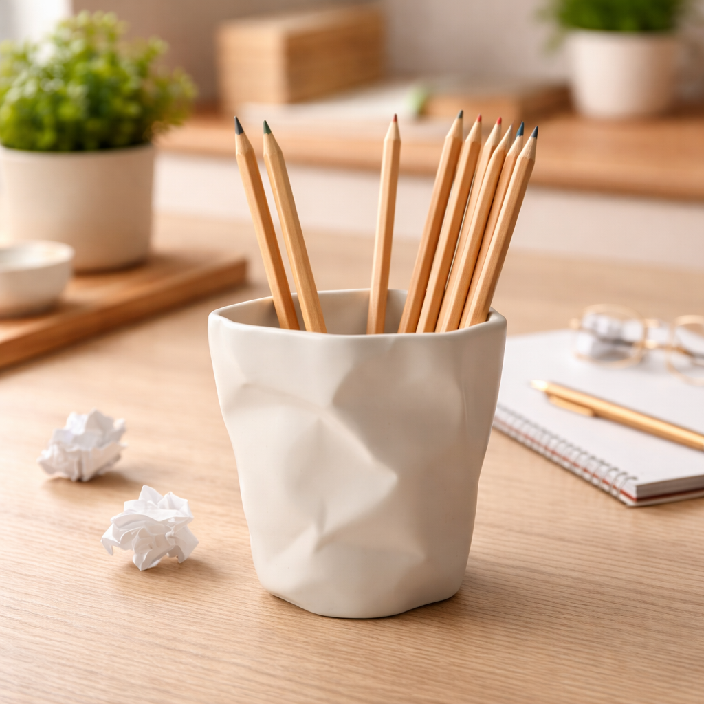 حامل أقلام بتصميم كوب متعرج لتنظيم الأدوات المكتبية