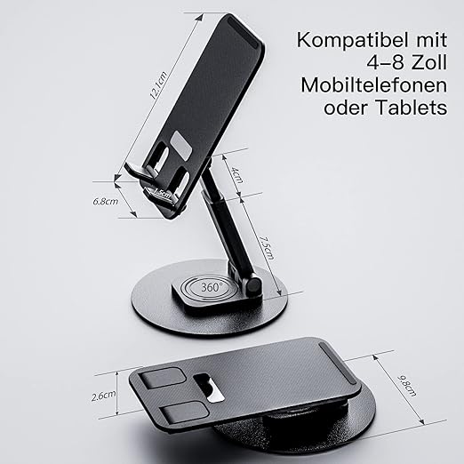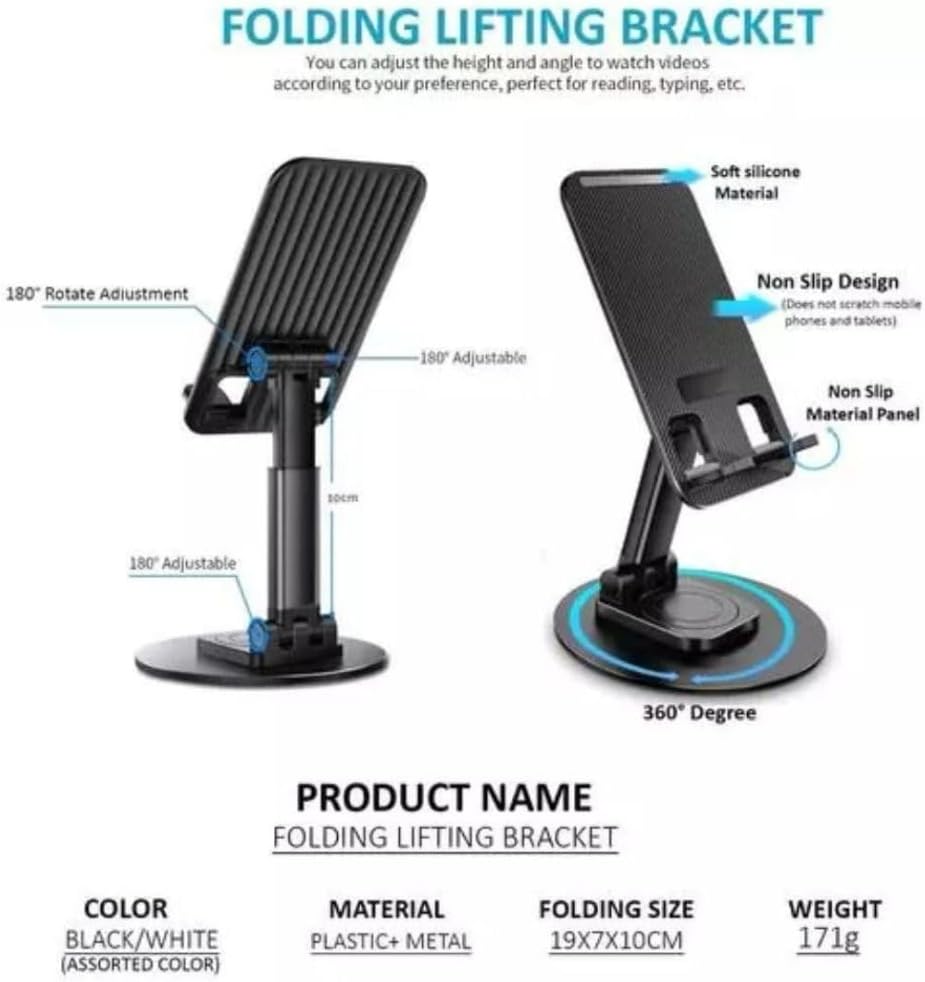 حامل موبايل وتابلت محمول يدور 360 درجة للتحكم في زواية الرؤية وقابل للطي والتعديل