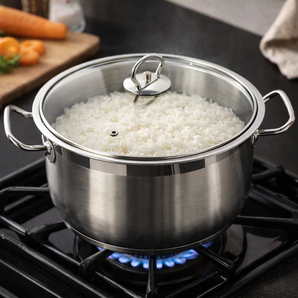 حلة استانليس ستيل مع غطاء زجاجي ويدين لسهولة الحمل
