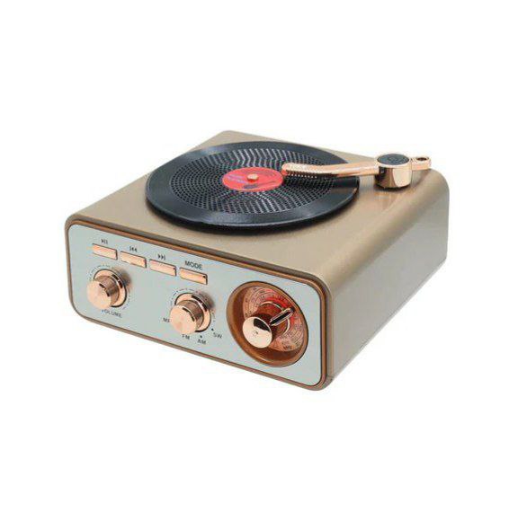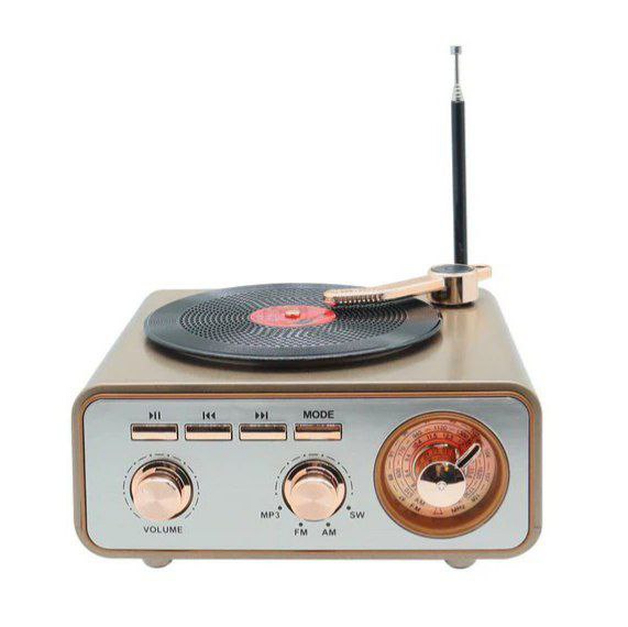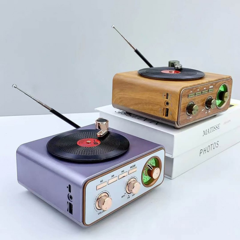 راديو بتصميم جرامافون كلاسيكي قابل للشحن بيو إس بي