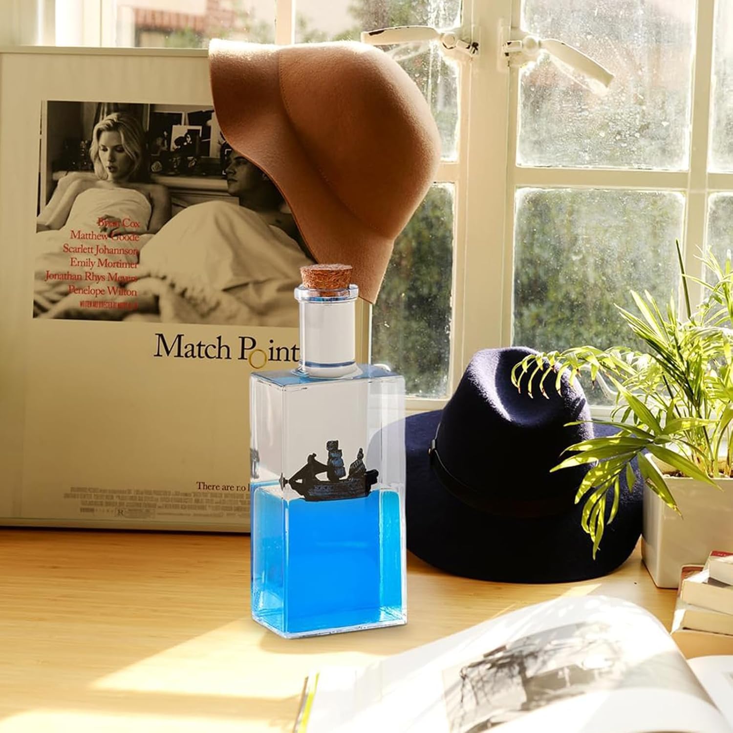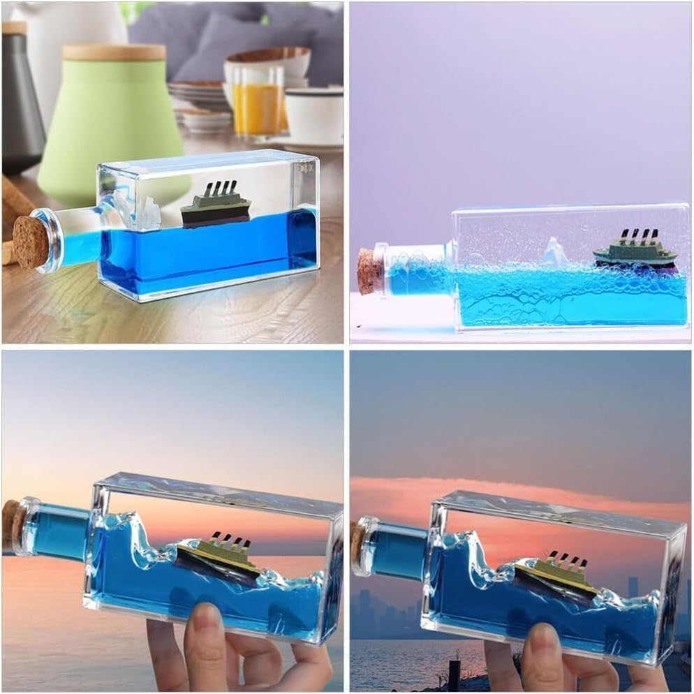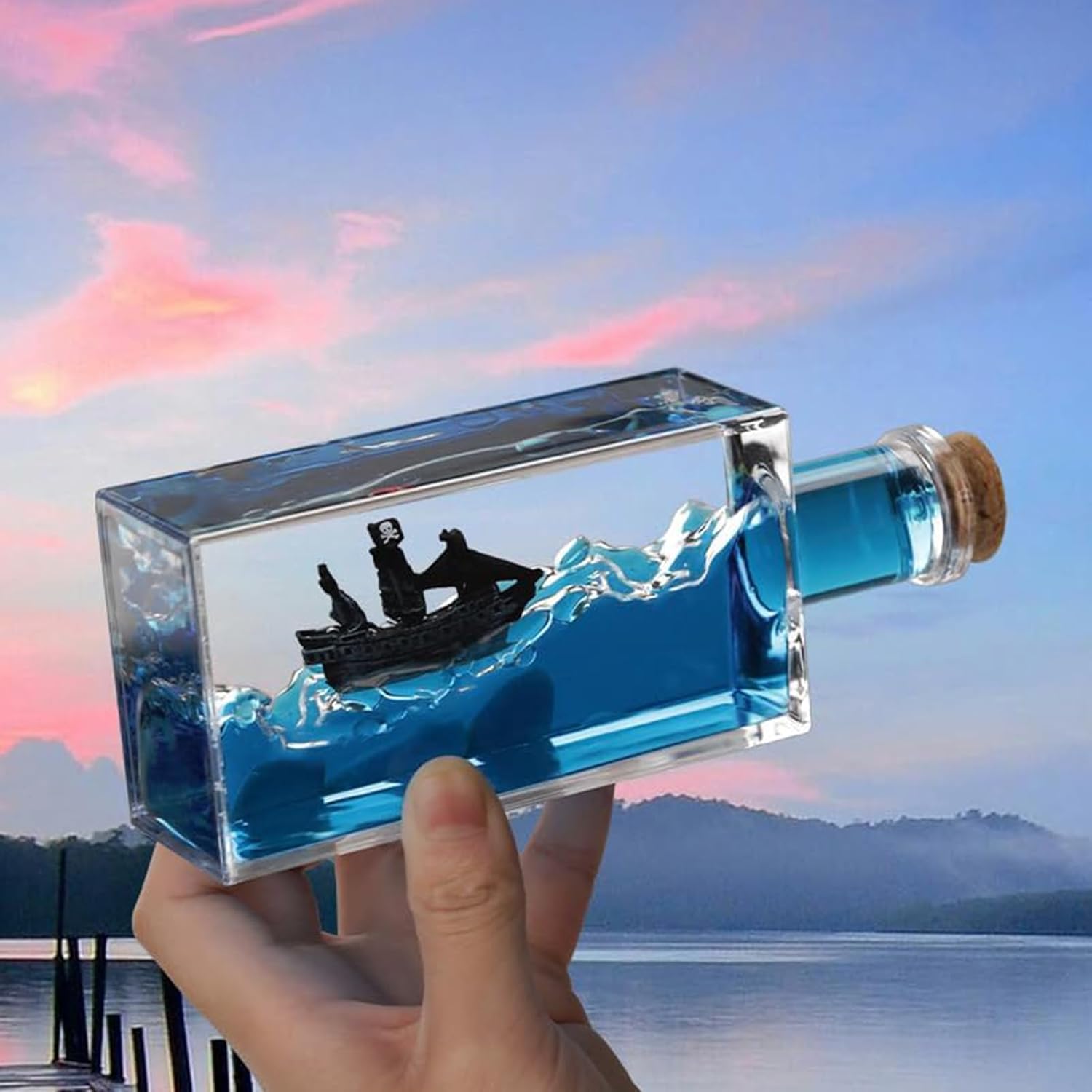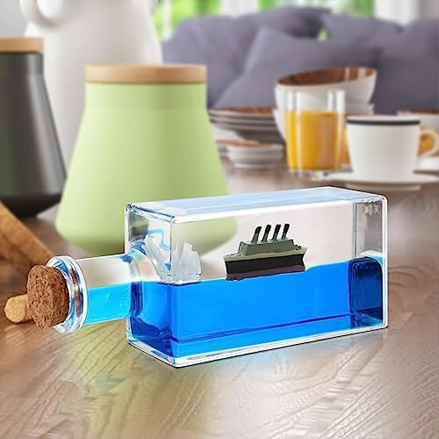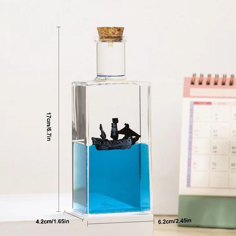 زجاجة ديكور مزينة من الداخل بسفينة بحرية مجسمة