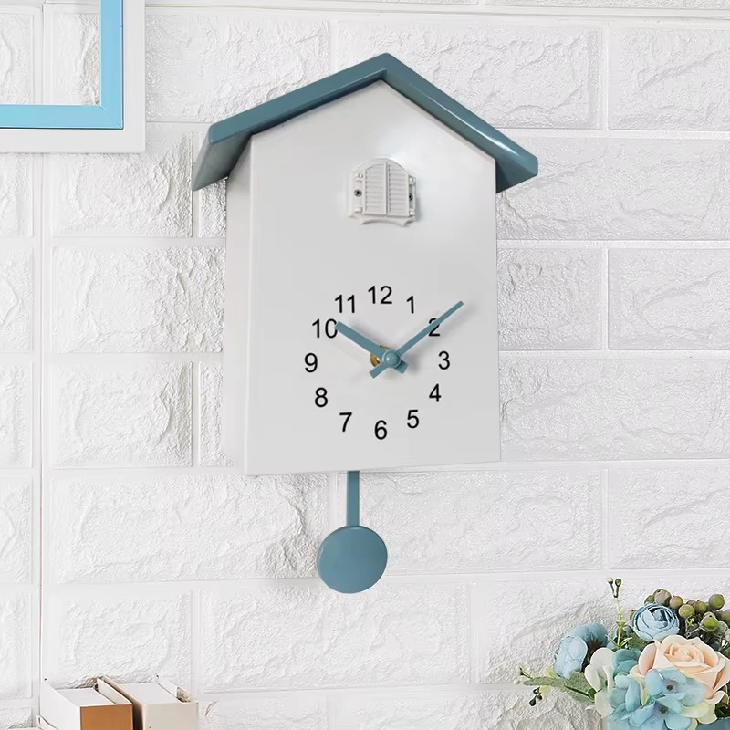ساعة حائط بتصميم منزل وطائر الوقواق مع بندول