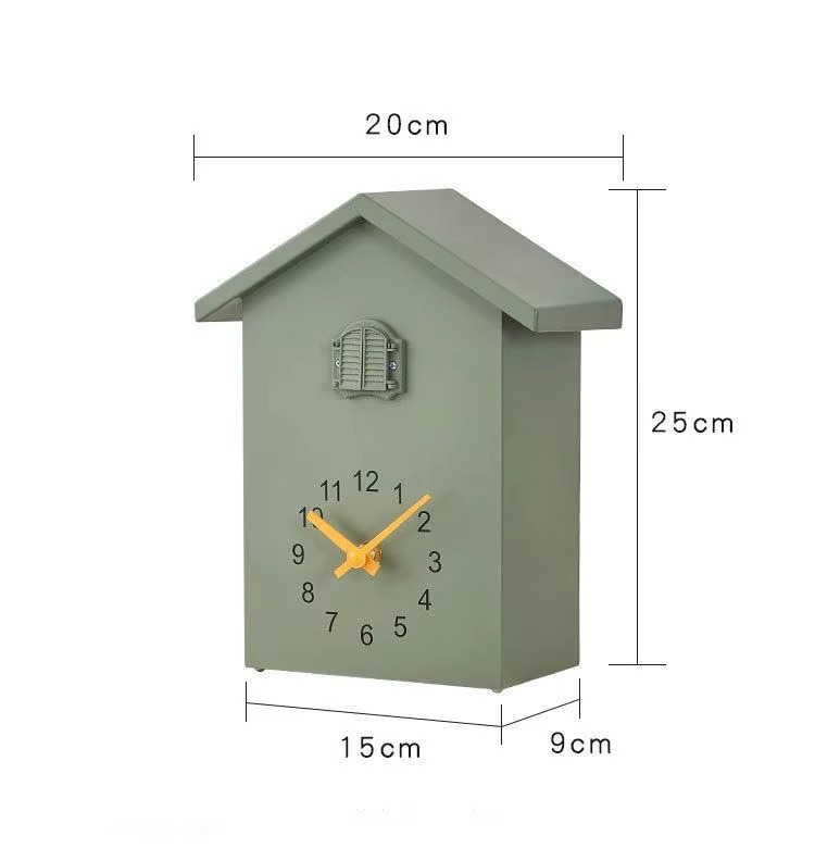 ساعة حائط بتصميم منزل وطائر وقواق يطل من النافذة