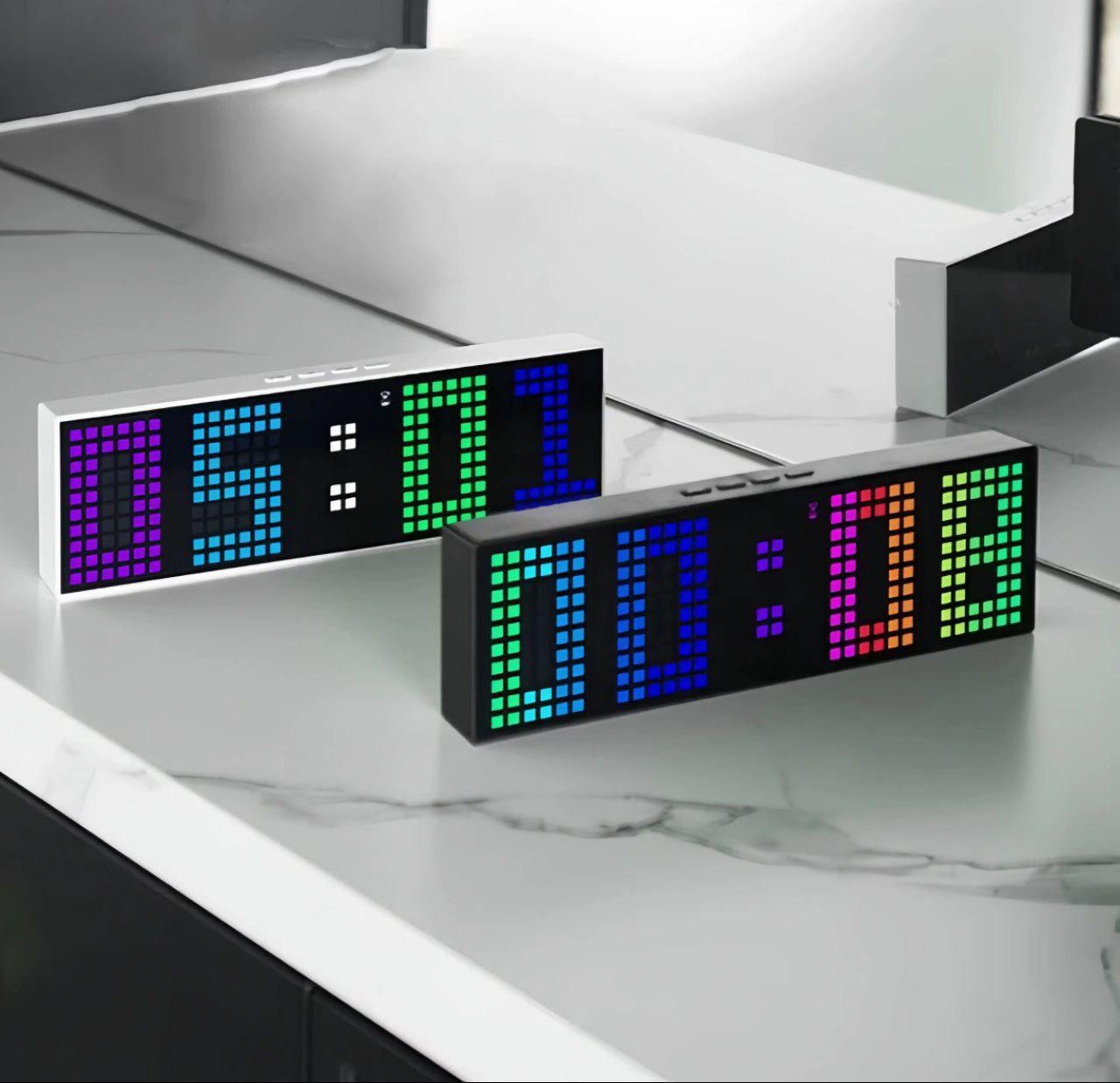 ساعة ومنبه بشاشة ليد بألوان آر جي بي