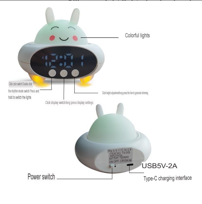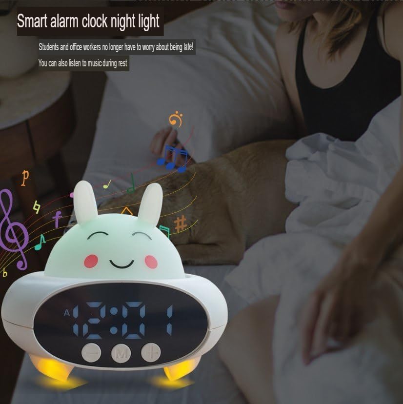 ساعة ومنبه بتصميم أرنب ب7 إضاءات مختلفة هتحلي المود وتغير ديكور غرفتك 🐰