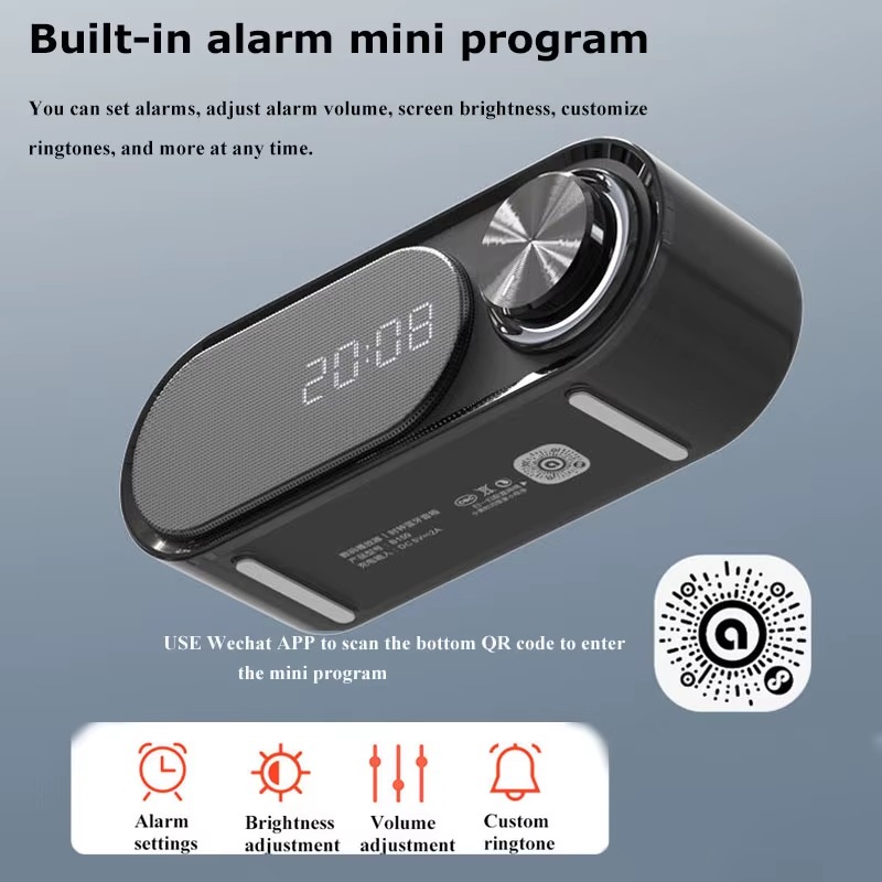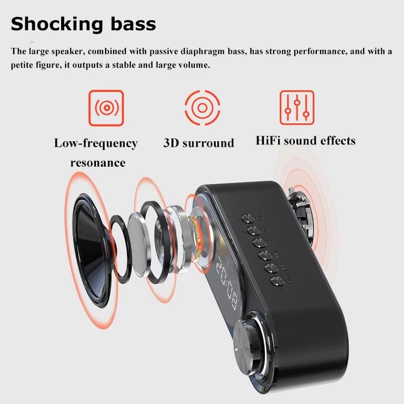 سبيكر لاسلكي بلوتوث مع ساعة رقمية ومنبه