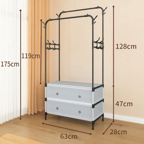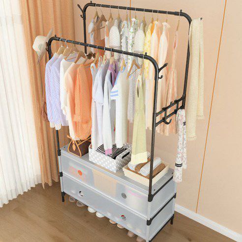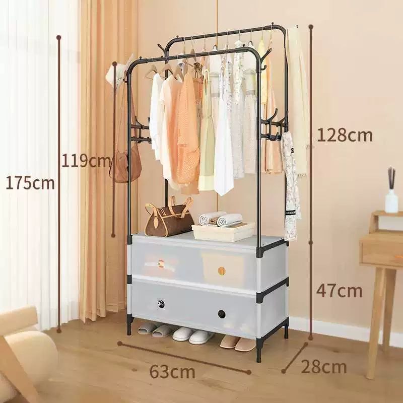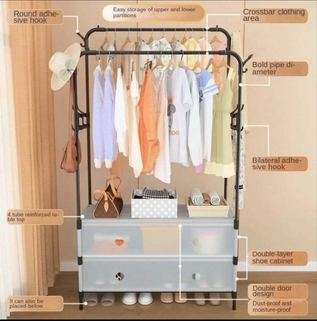 ستاند لتنظيم الملابس مع هوك جانبي لتعليق الشنط والاسكارف و 2 درج لتنظيم الاحذية