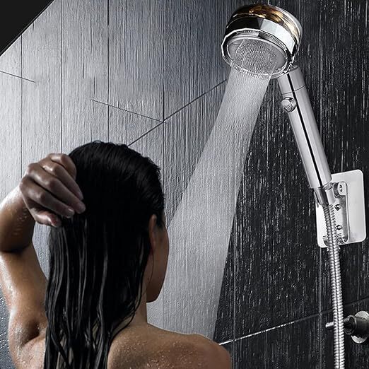 سماعة دش لزيادة ضغط المياه بفلتر لتنقية وإزالة الشوائب و 3 انظمة رش وزرار للفتح والغلق