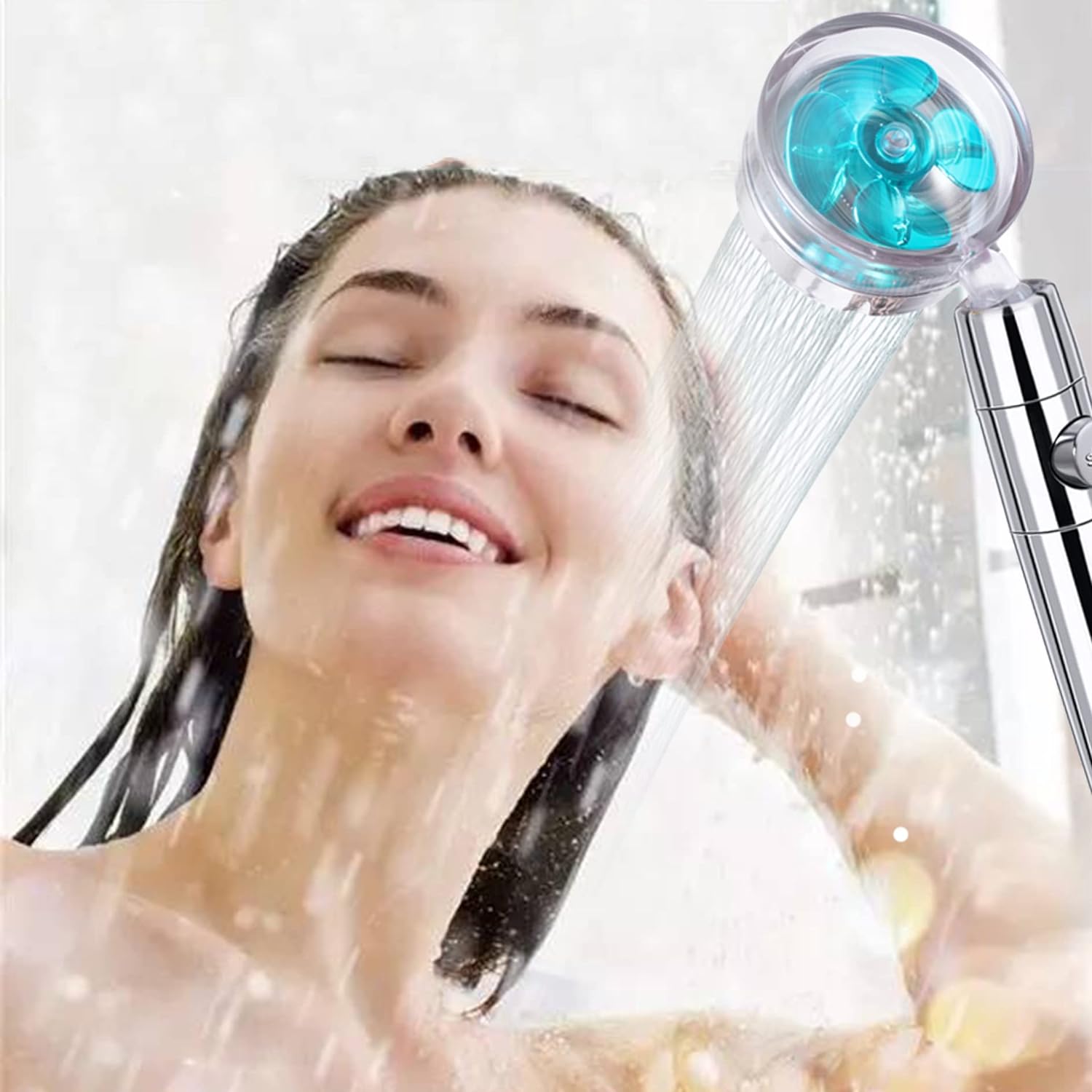 سماعة دش بمروحة لزيادة ضغط المياه بنسبة 200% ورأس تدور 360 درجة