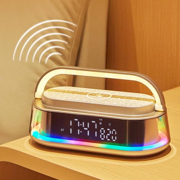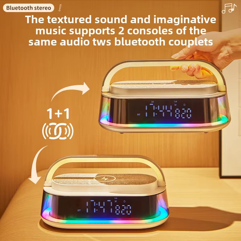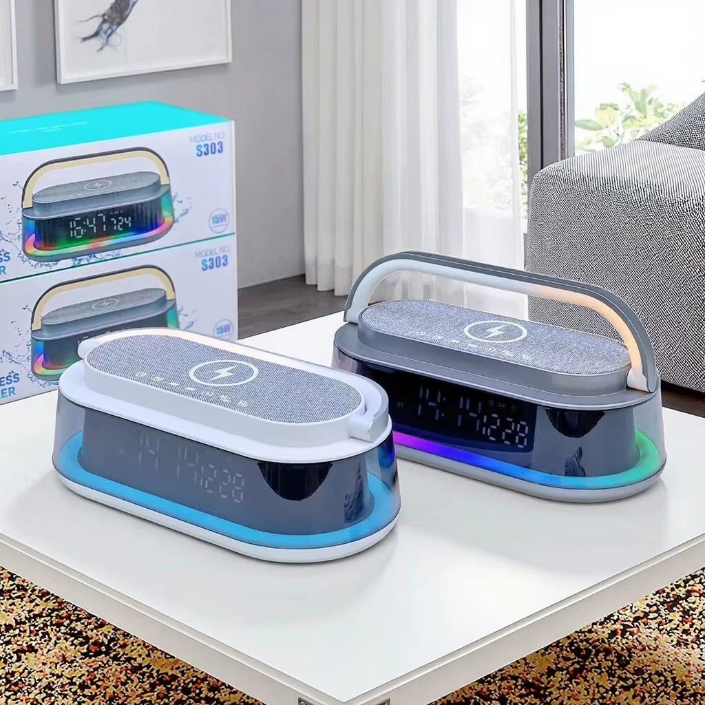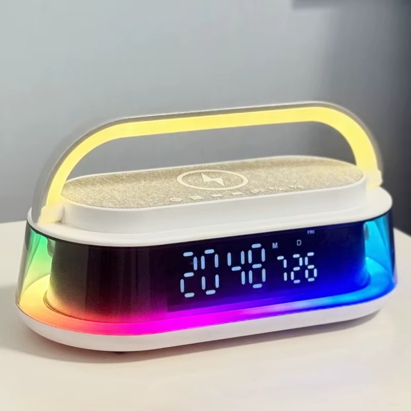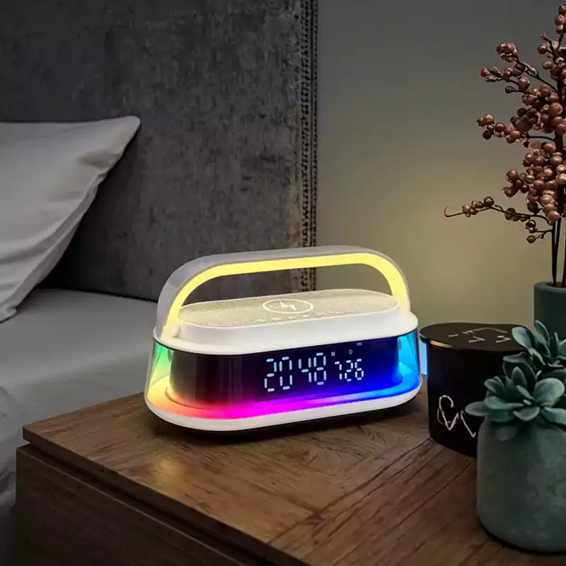شاحن لاسلكي 6 * 1 مع سبيكر بلوتوث وساعة ومنبه وراديو بإضاءة ليد
