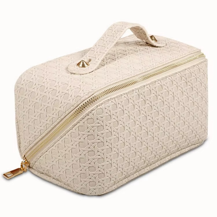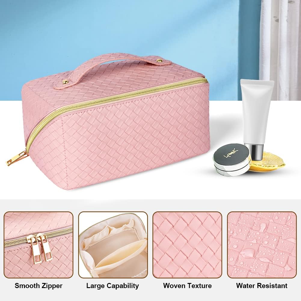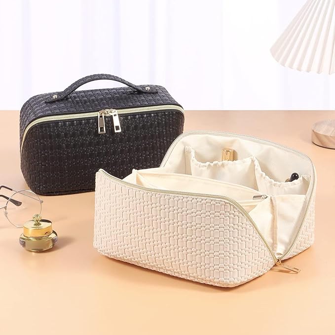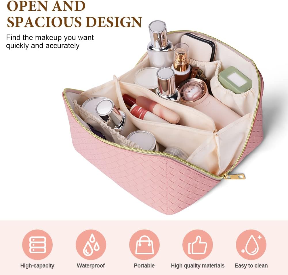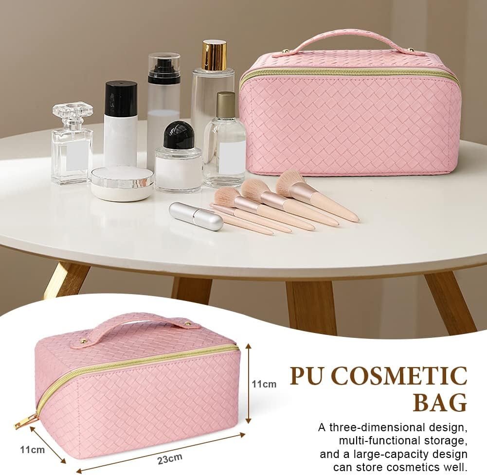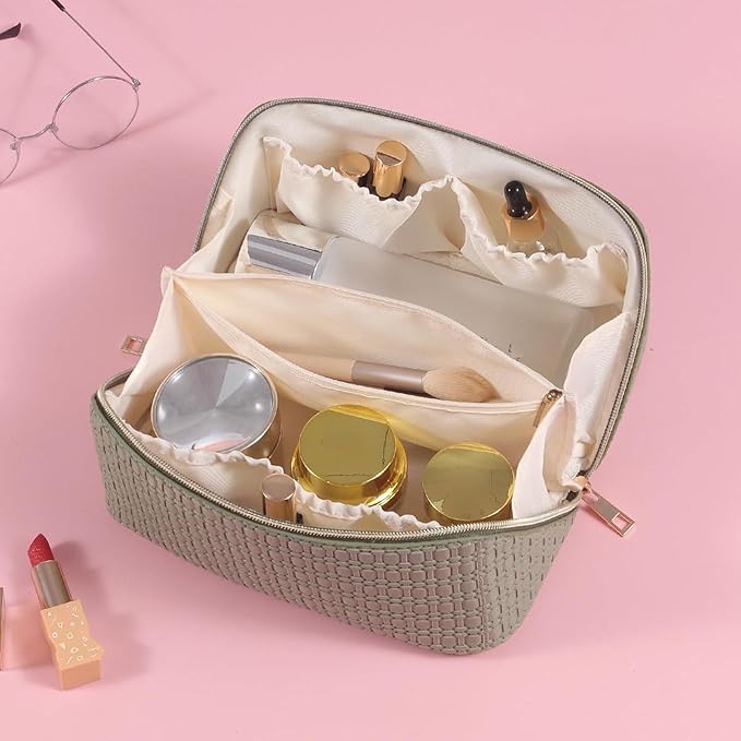 شنطة جلد وتربروف لحمل وتنظيم الميك اب مقسمة من الداخل