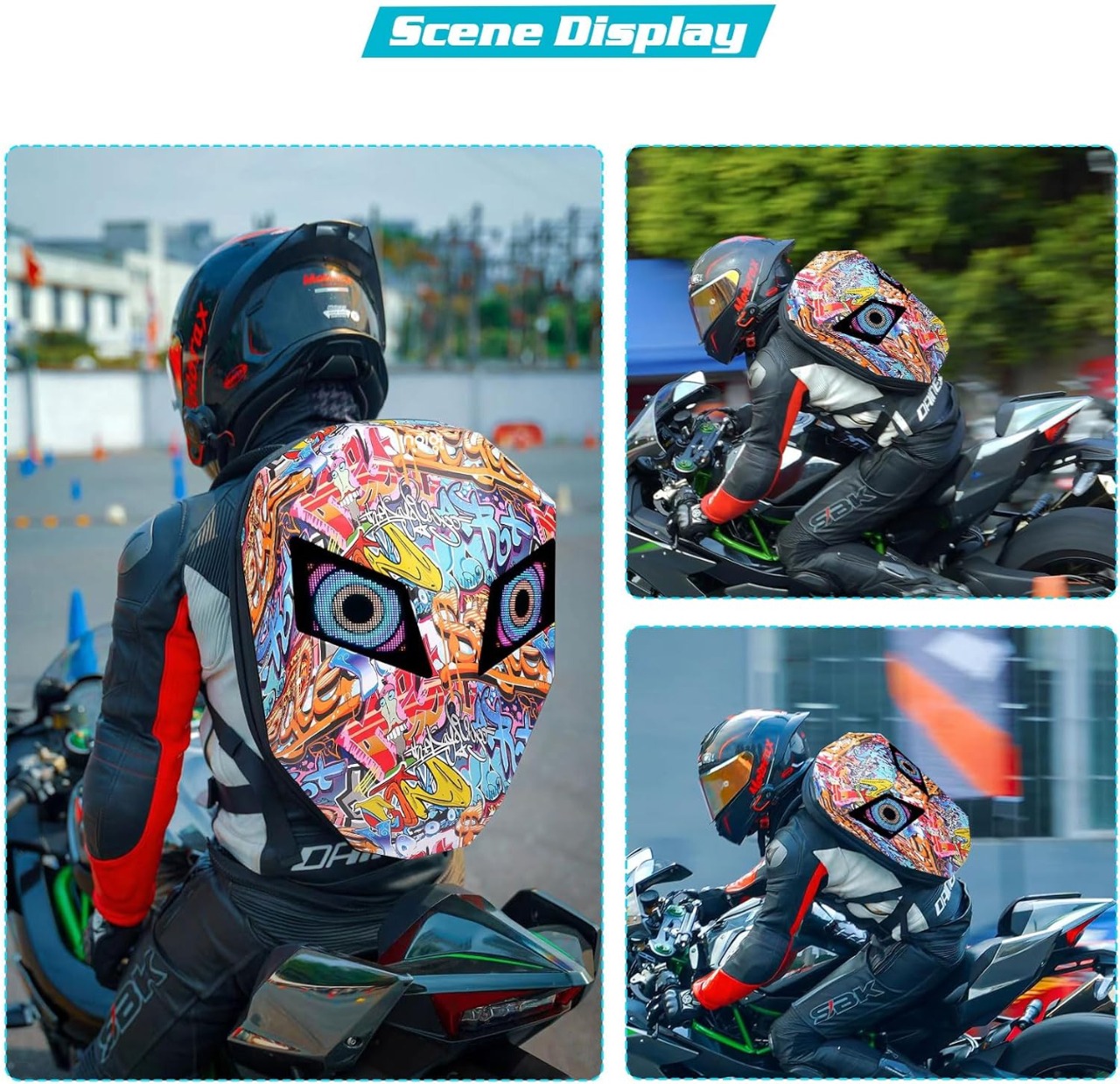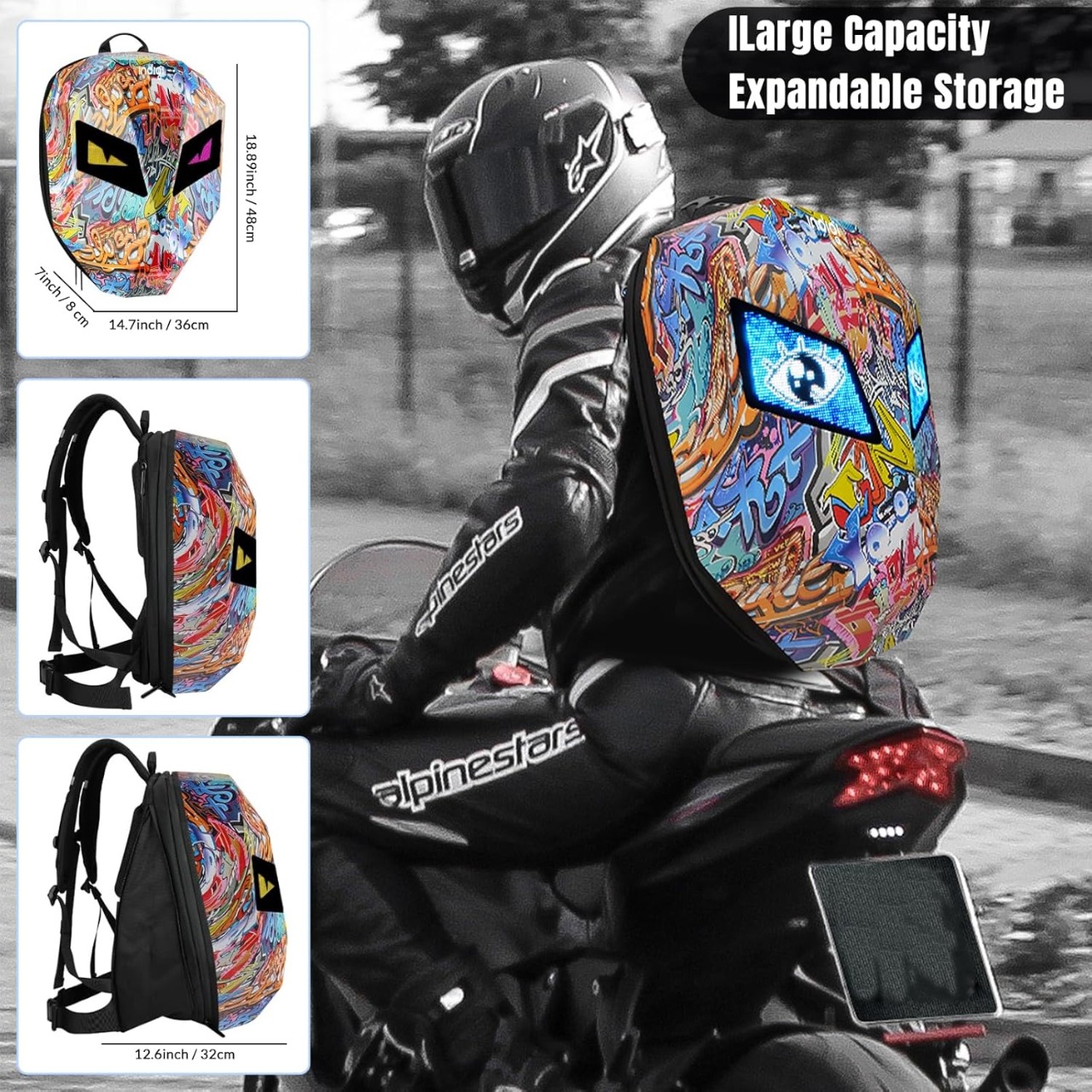 شنطة ظهر بعيون ليد للدراجات النارية قابلة للبرمجة بتصميم خوذة ثلاثيه الأبعاد