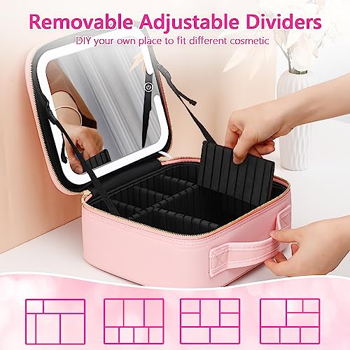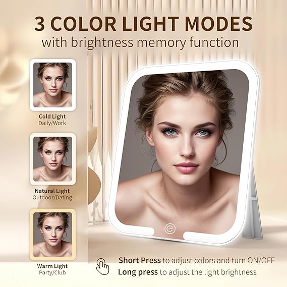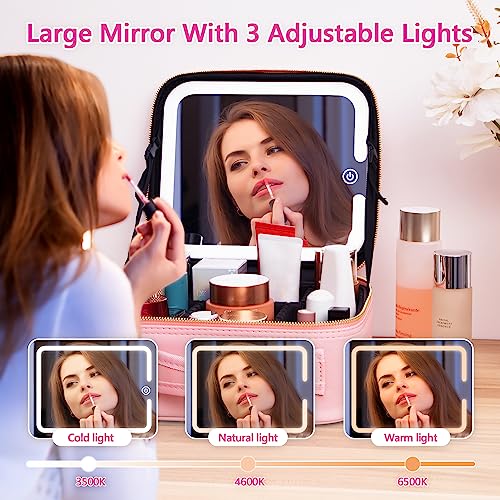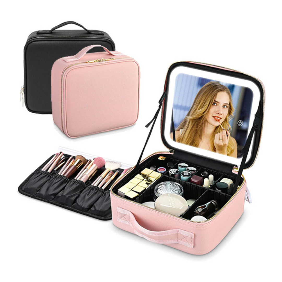 شنطة لحمل وتنظيم الميك اب مع مرآة تاتش قابلة لاعادة الشحن