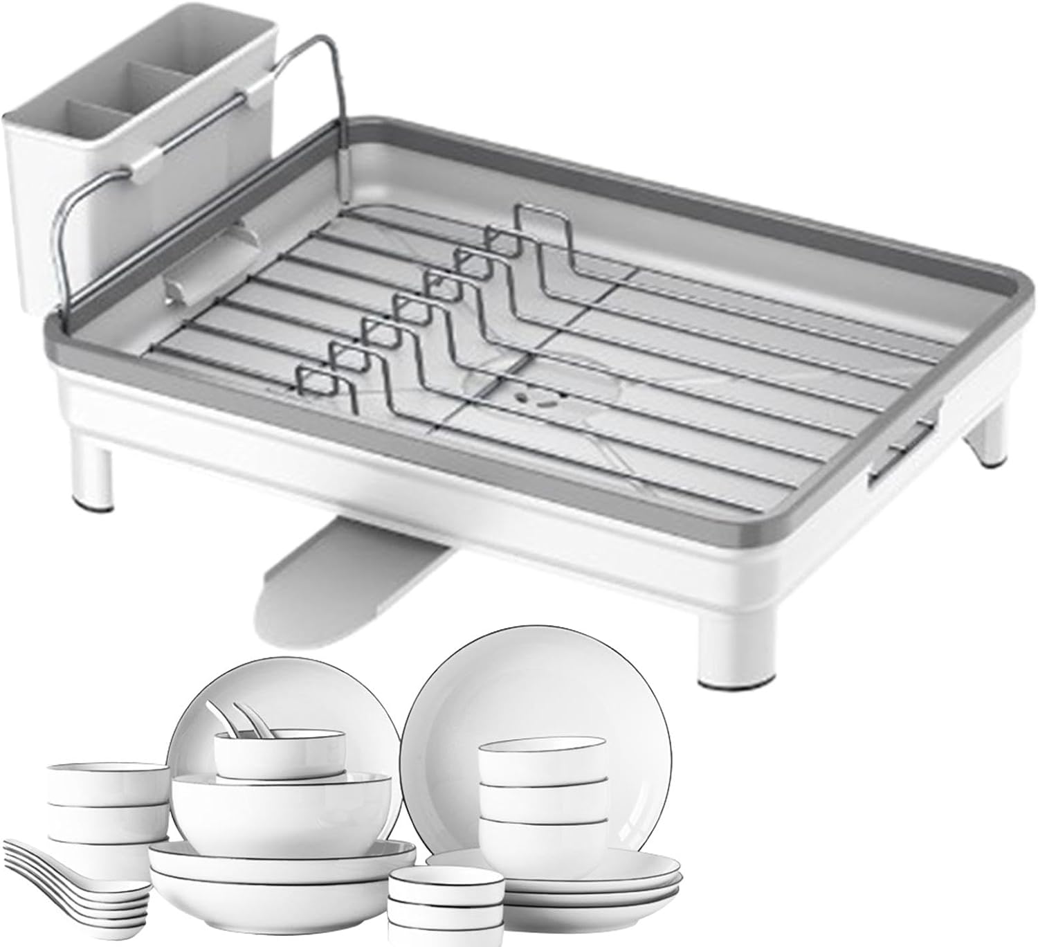 صفاية مواعين لحمل وتجفيف الأطباق والأكواب مزودة بحامل للشوك والمعالق وفتحة لتصريف المياه