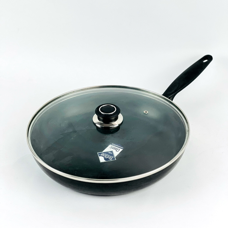 طاسة تيفلون بغطاء زجاجي بمقبض لسهولة الحمل – مقاس 30 سم
