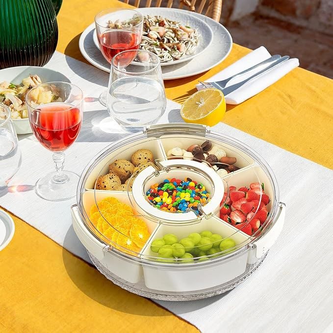 طبق تسالي دوار ب 6 خانات بغطاء شفاف لتقديم الحلويات والمكسرات