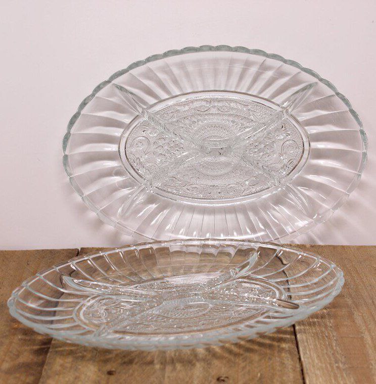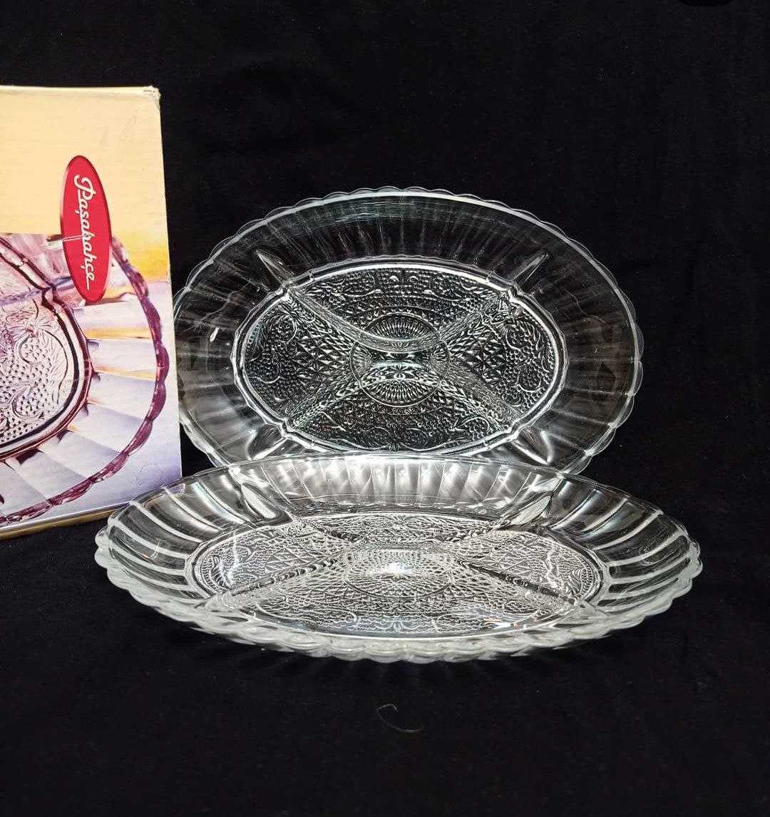 طقم تسالي مكون من قطعتين من الزجاج الشفاف لتقديم المكسرات والكاندي