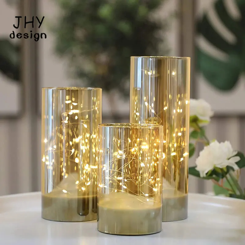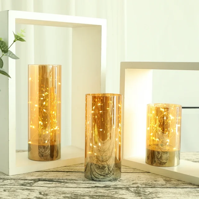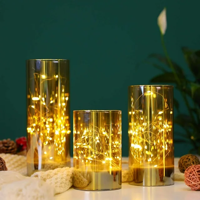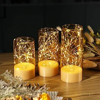 طقم شمع زجاجي 3 قطع بمقاسات مختلفة مضئ بدون لهب ببطاريات لتجديد ديكور البيت