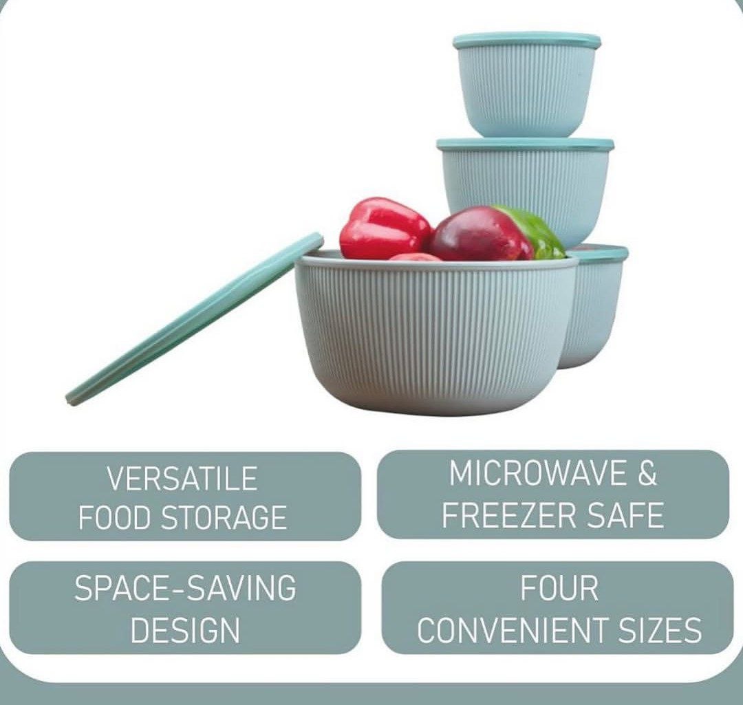 طقم علب تلاجة 4 قطع عملي يحافظ على أكلك منظم وطازة 🧊