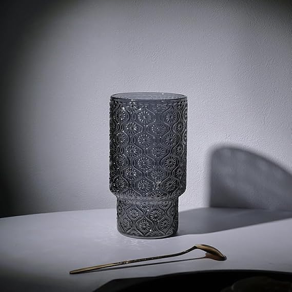 طقم كوبايات زجاج مزخرف باشكال مختلفة باللون الرمادي 6 قطع