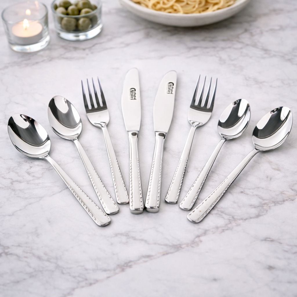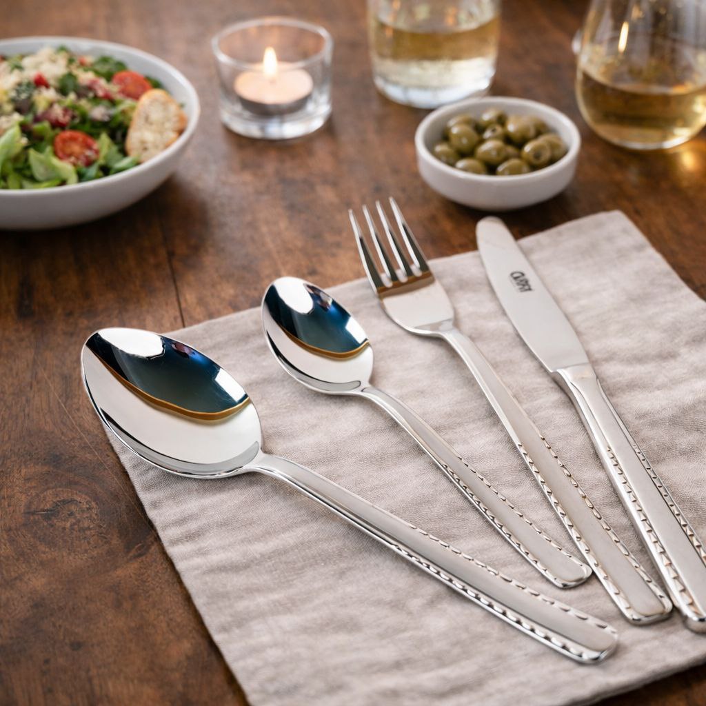 طقم معالق وشوك وسكاكين استانلس ستيل تركي 24 قطعة باللون الفضي