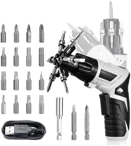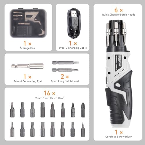 طقم مفك كهربائي لاسلكي 25 قطعة بتصميم يد دواره قابلة للتعديل بيو اس بي للشحن