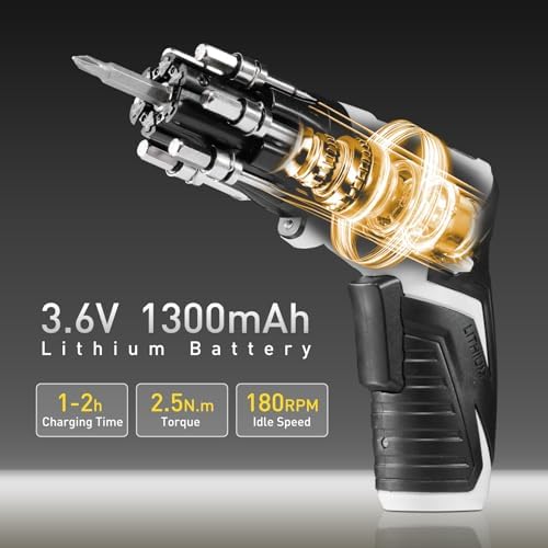 طقم مفك كهربائي لاسلكي 25 قطعة بتصميم مقبض قابل للدوران 180 درجة _ بيو اس بي للشحن