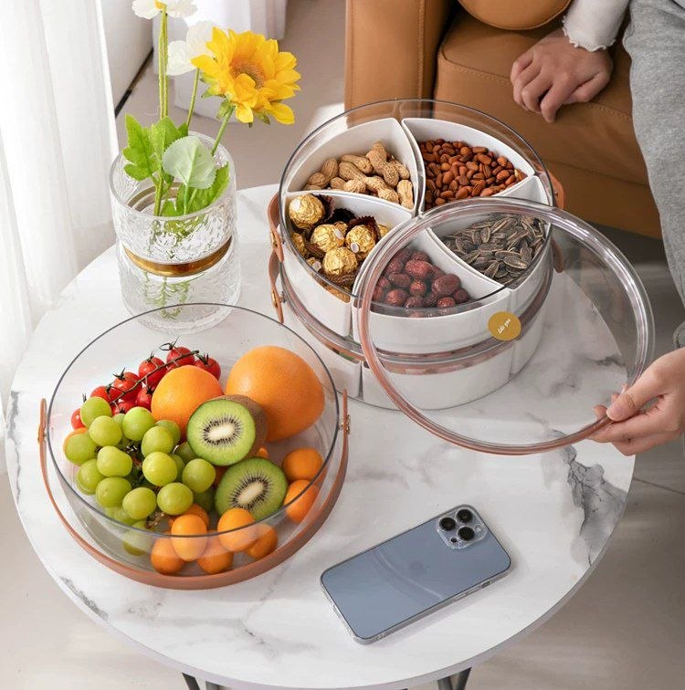 قدمي الحلويات والمكسرات بشكل شيك لضيوفك في علبة تقديم التسالي الدائرية ✨