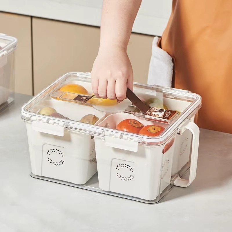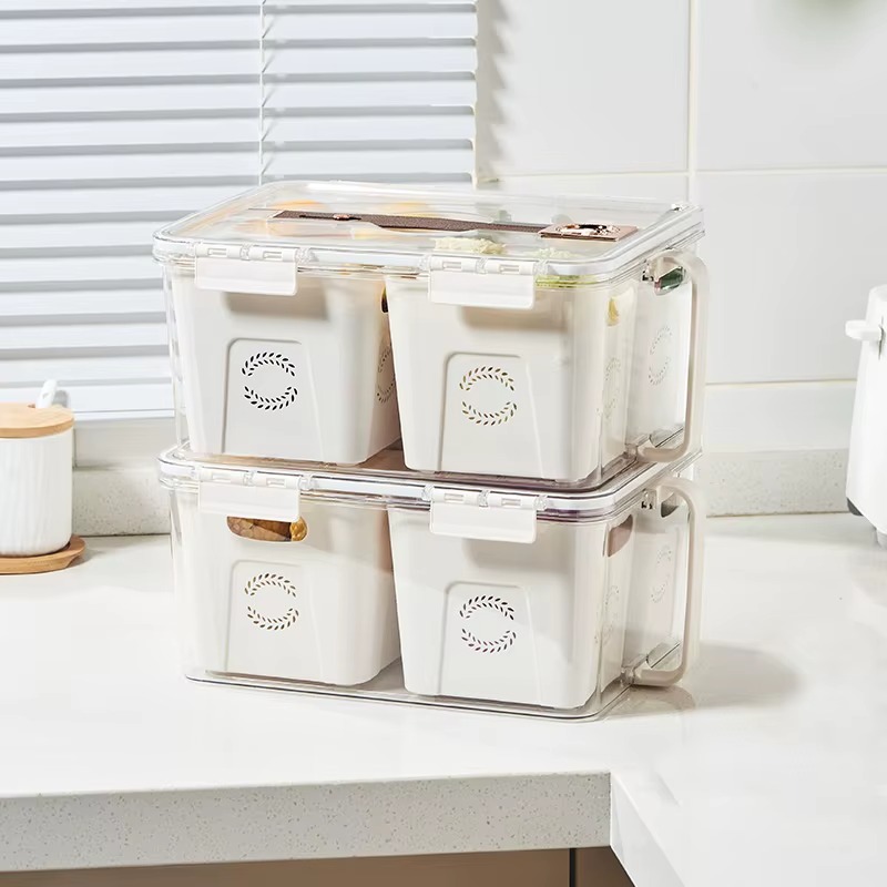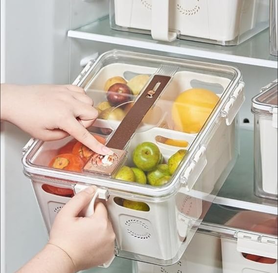 علبة ومنظم تلاجة اكريليك بمقبض وغطاء بتايمر لضبط وقت التخزين مقسمة ل 4 خانات بسعة 7 لتر