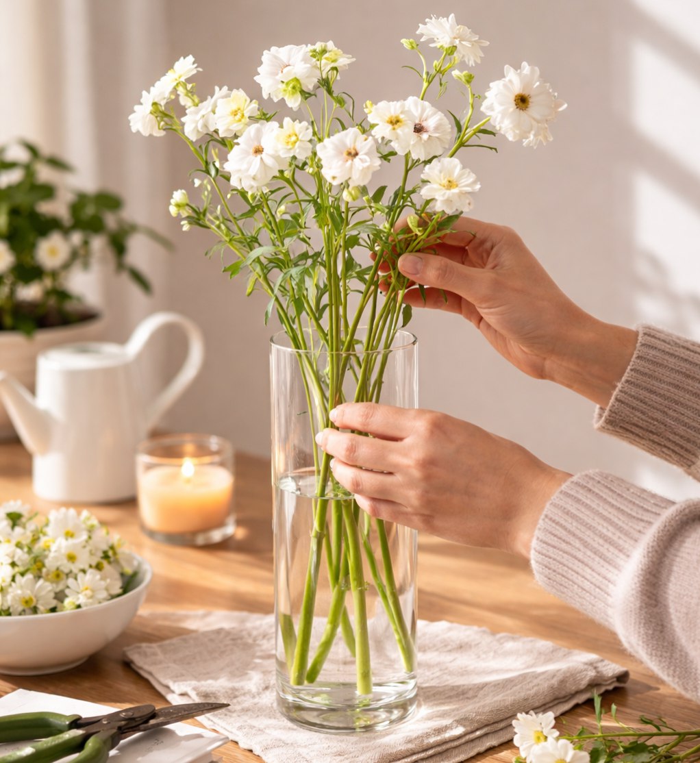 فازة بتصميم أنيق وبسيط يبرز جمال الزهور الطبيعية أو الصناعية