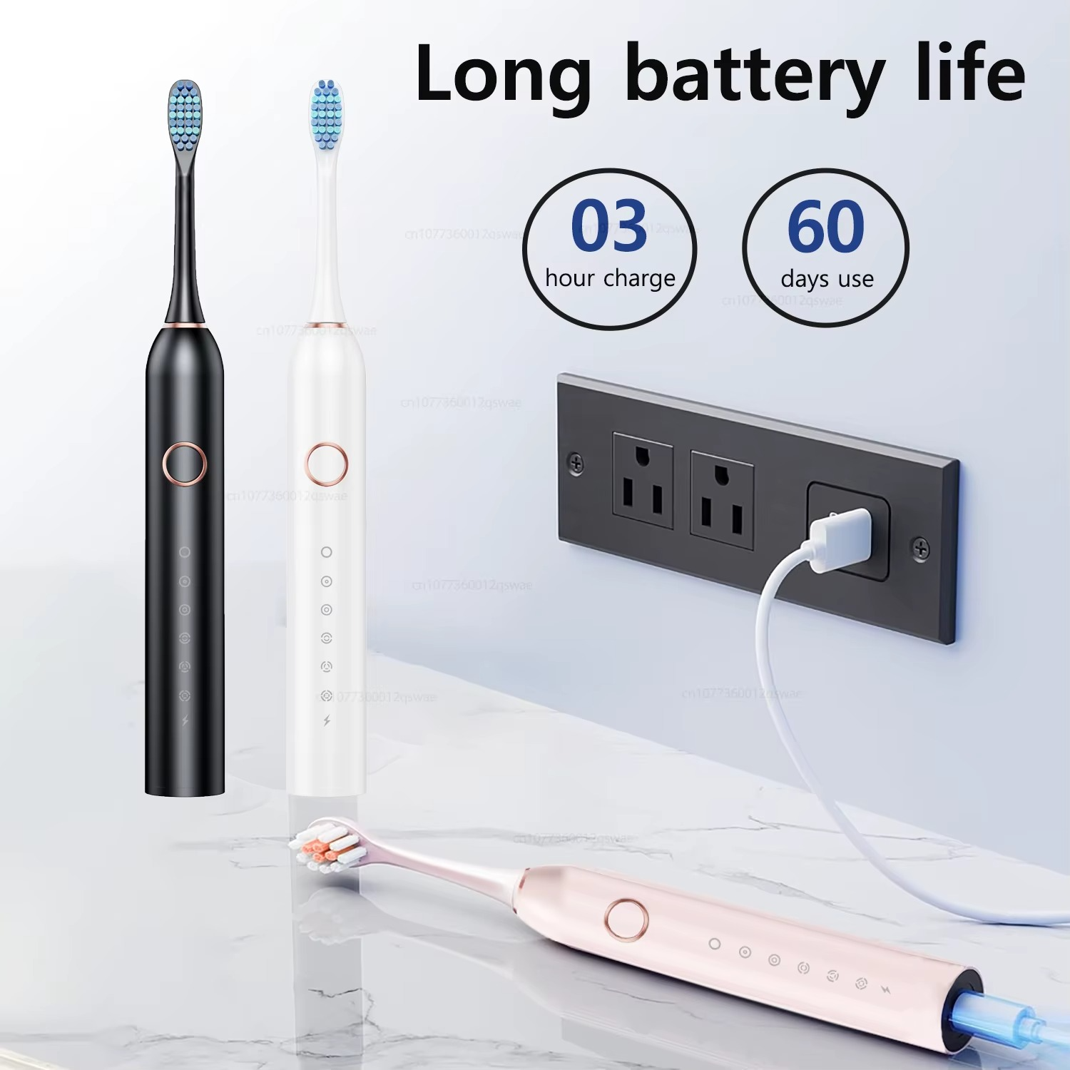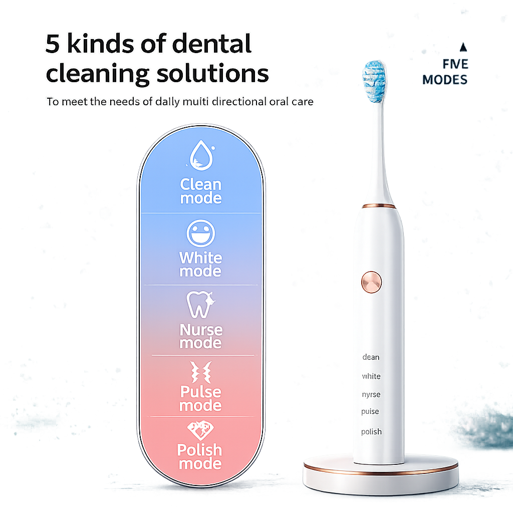 فرشاة أسنان كهربائية بتقنية الاهتزاز حتي 40000 ذبذبة 5 أوضاع مع 4 رؤوس قابلة لاعادة الشحن