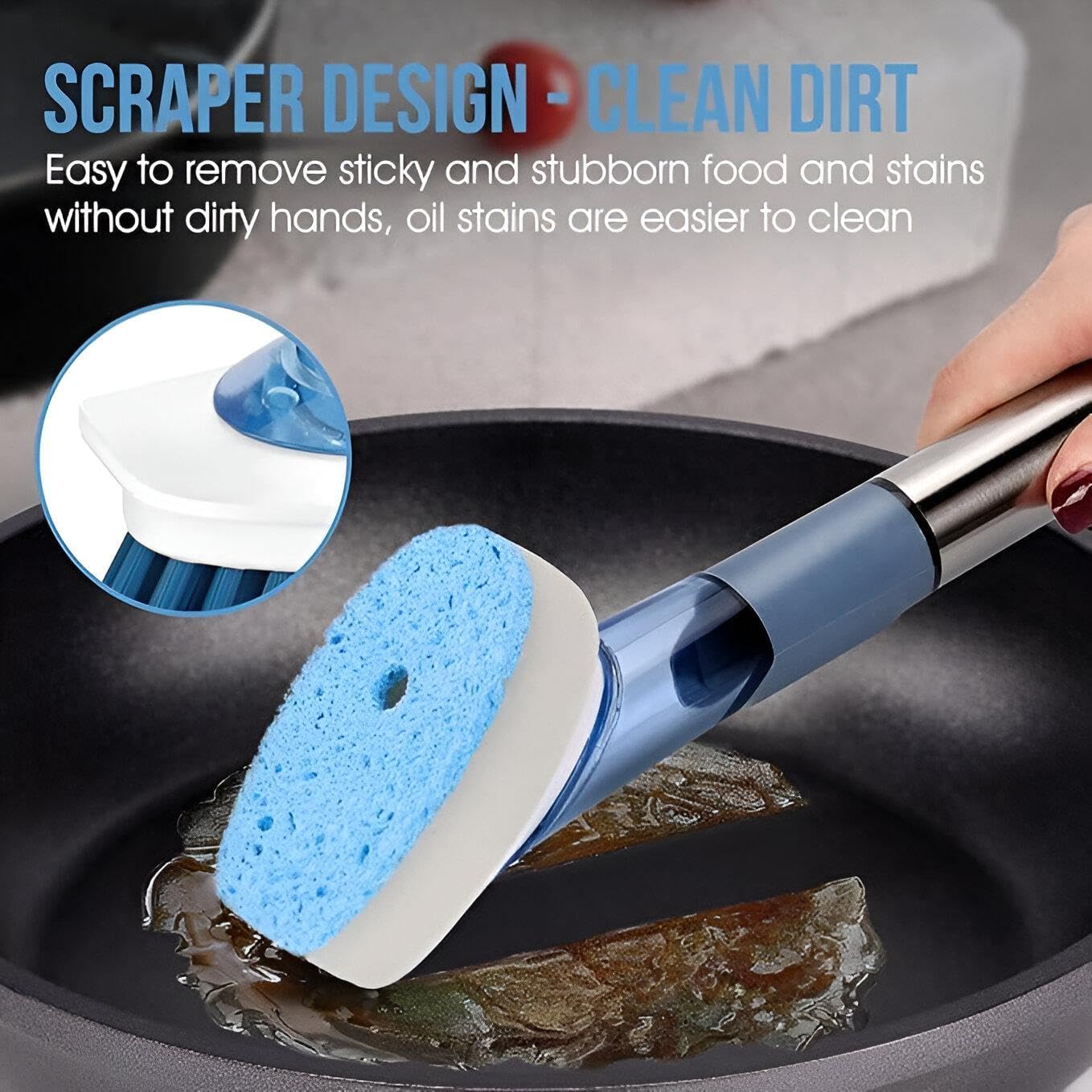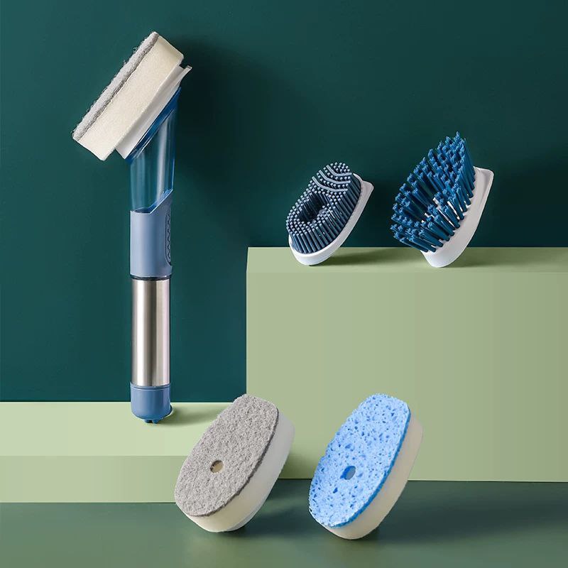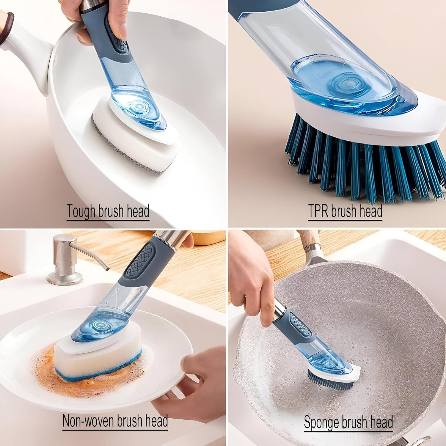 فرشاة أطباق 3 * 1 مع خزان صابون و3 فرش قابلة للتبديل