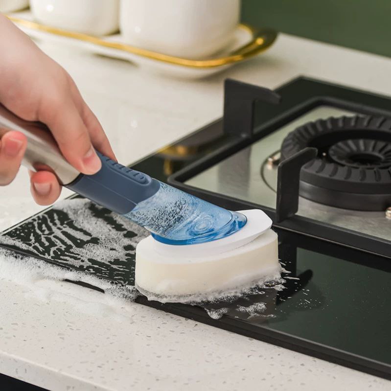 فرشة عملية لسهولة وسرعة غسيل الأطباق والصواني وادوات الطهي بخزان صابون