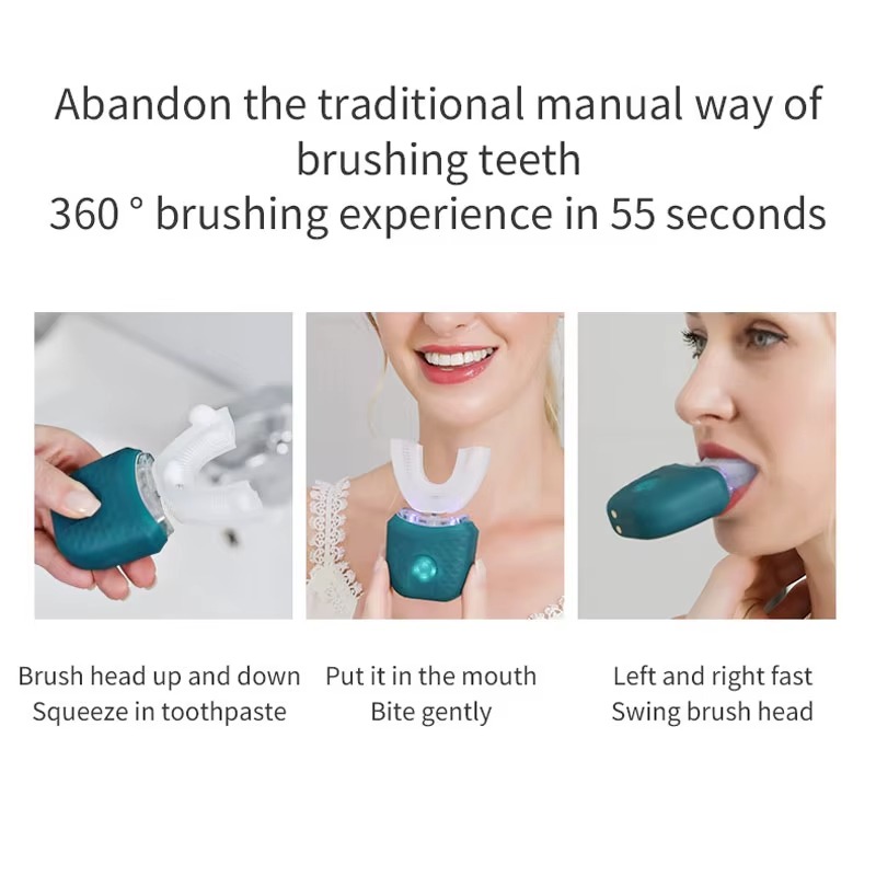 مريحة وتدور بزاوية 360 درجة وتنظف كامل الأسنان دون الحاجة لاستخدام اليدين 👌