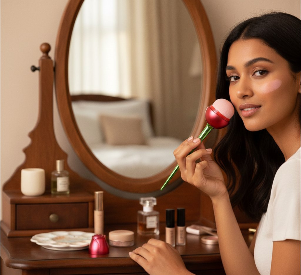 فرشة ميكاب لدمج الكنتور والكونسيلر وكريم الاساس شكل وردة