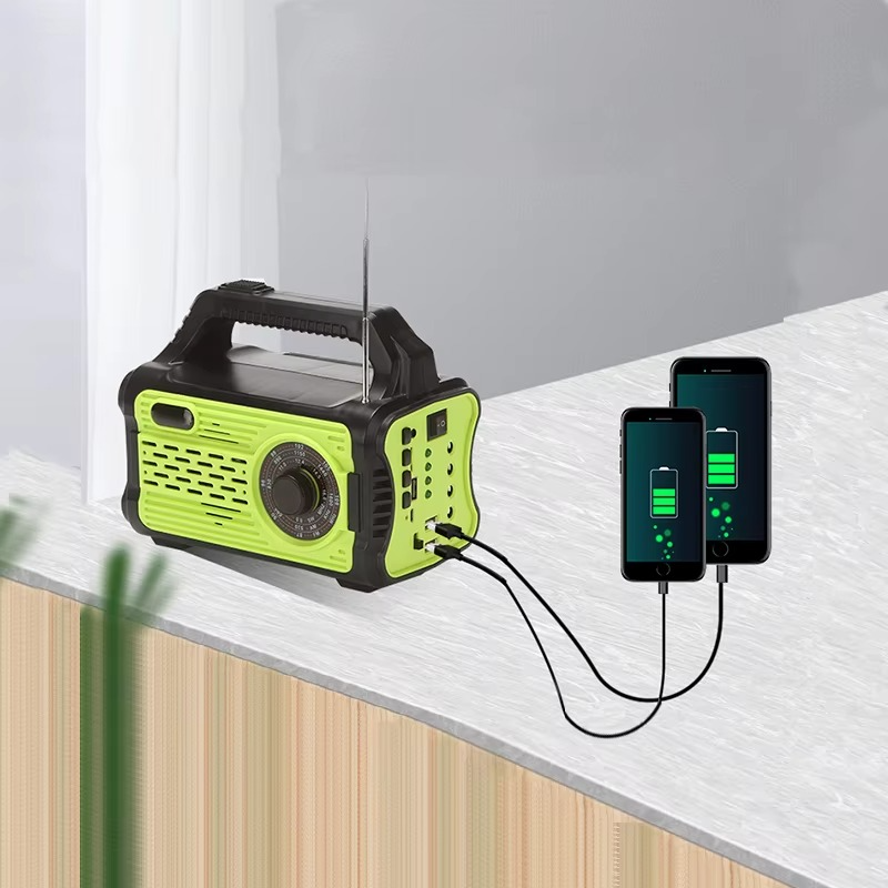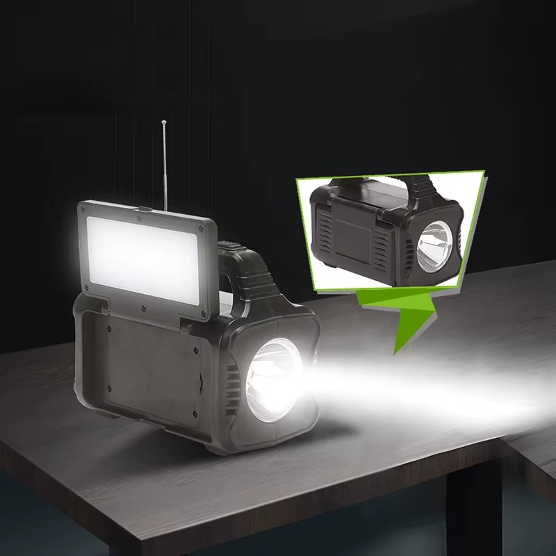 كشاف طوارئ يعمل بالطاقة الشمسية 4 *1مع راديو وباور بانك ومشغل بلوتوث