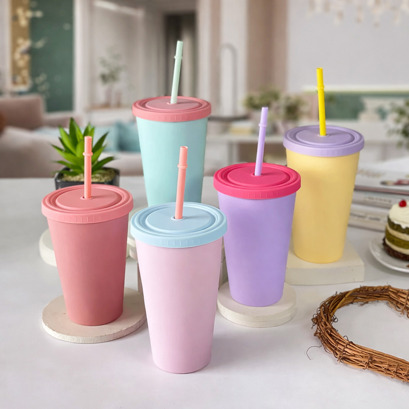 كوباية 500 ملي بغطاء محكم الغلق وشاليموه لشرب المياة والعصائرالمثلجة