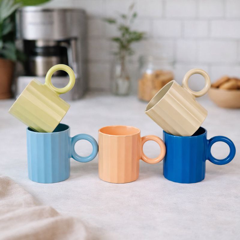 مج بورسلين بتصميم مضلع ويد دائرية لتناول النسكافيه 300 ملي