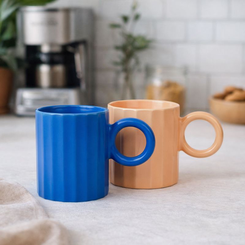 مج بورسلين بيد دائرية وتصميم مضلع أنيق لتناول المشروبات الساخنة واللاتيه300 ملي