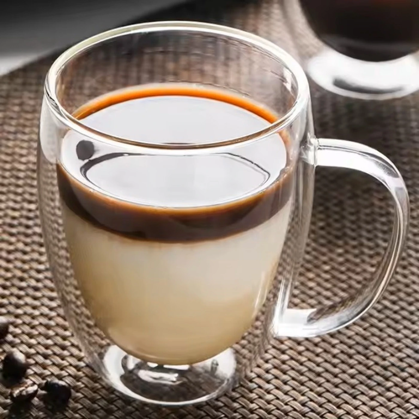 مج زجاج شفاف دبل للشاي واللبن والنسكافيه 350 ملي