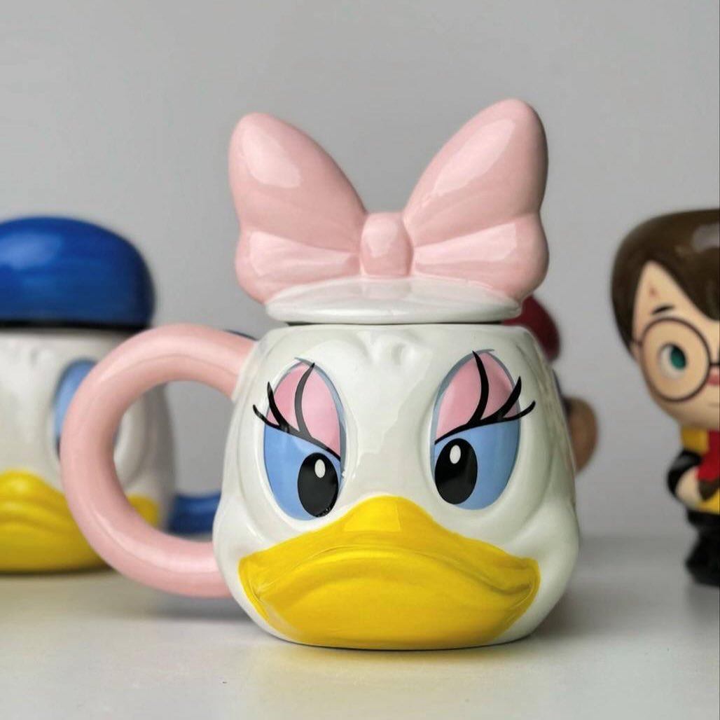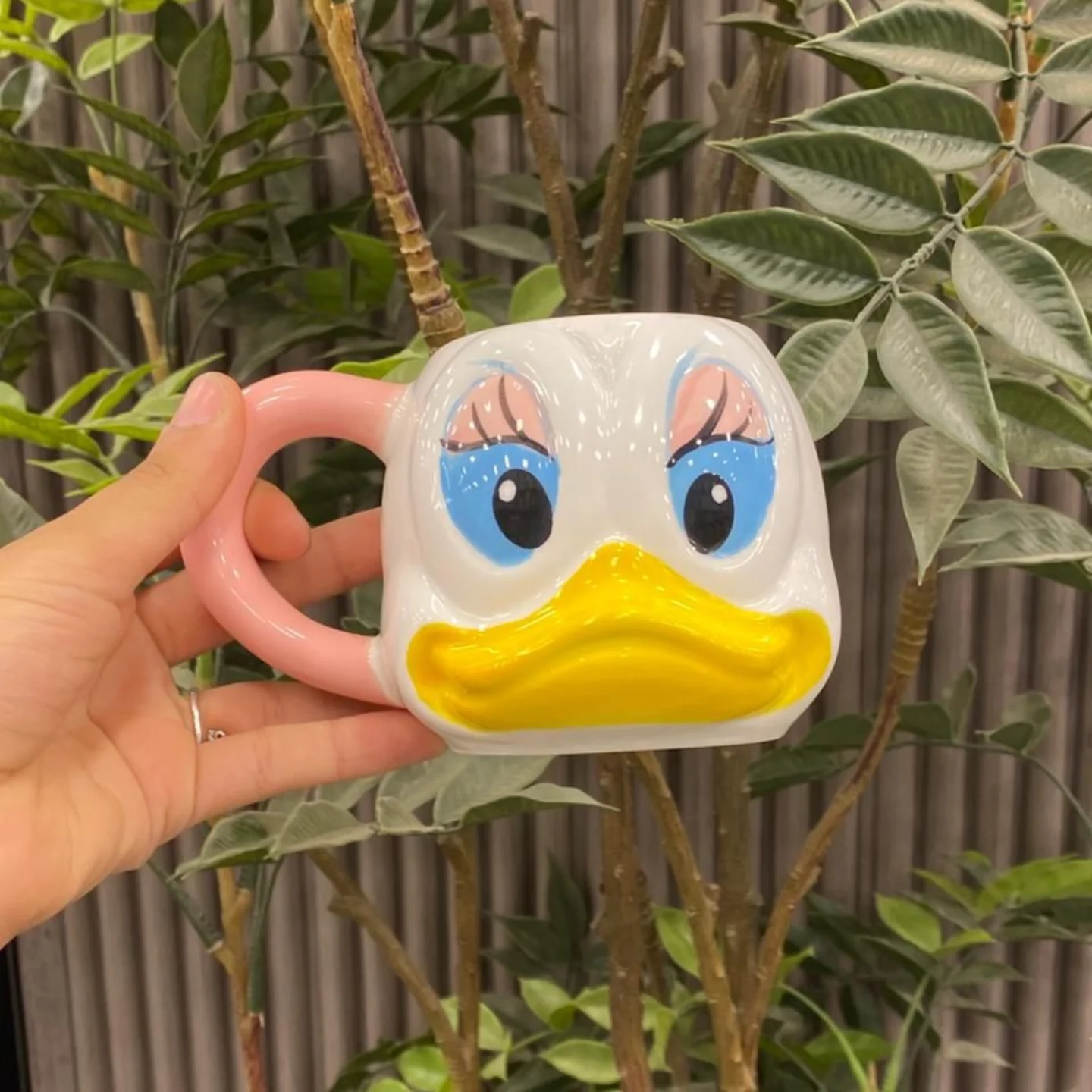 مج سيراميك بتصميم كرتوني بطوطة بيد كبيرة للمشروبات الساخنة