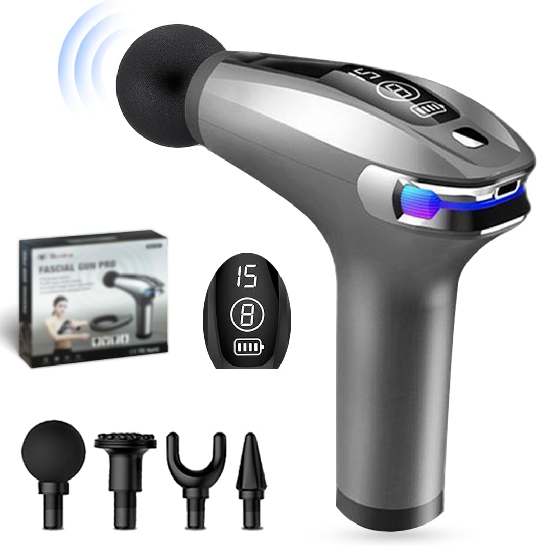 مسدس مساج لاسلكي بـ 4 رؤوس قابلة للاستبدال ب 9 مستويات لاسترخاء عضلات الجسم