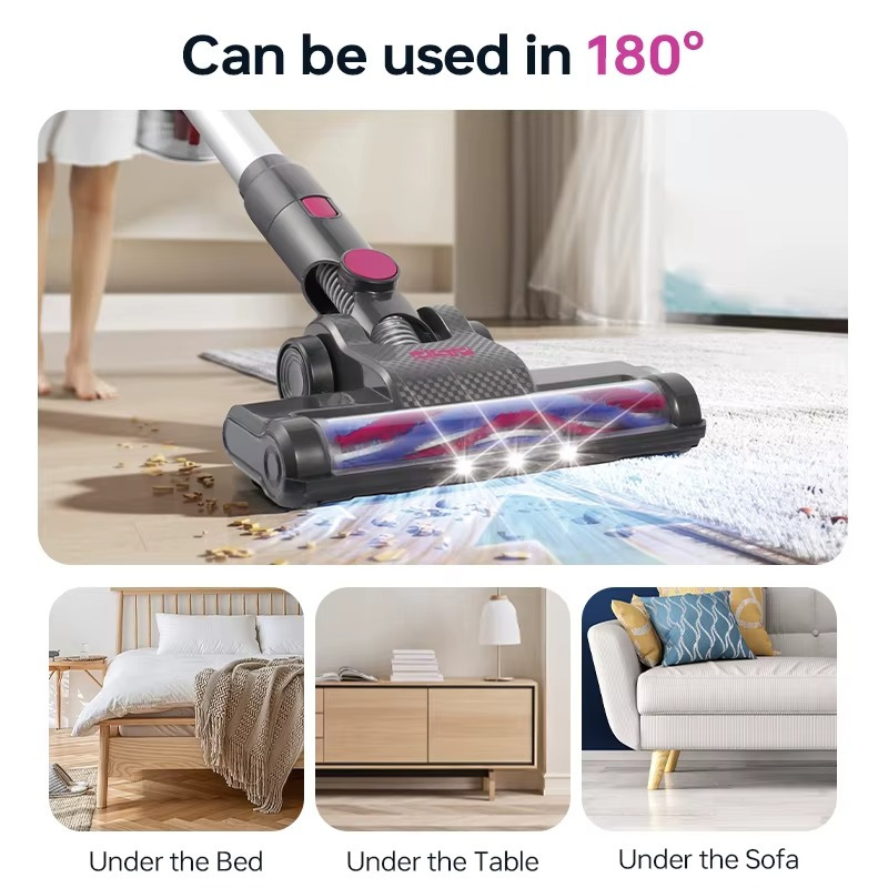 رأس أرضية ليد بزاوية 180° لتنظيف مثالي في الزوايا والمناطق المظلمة