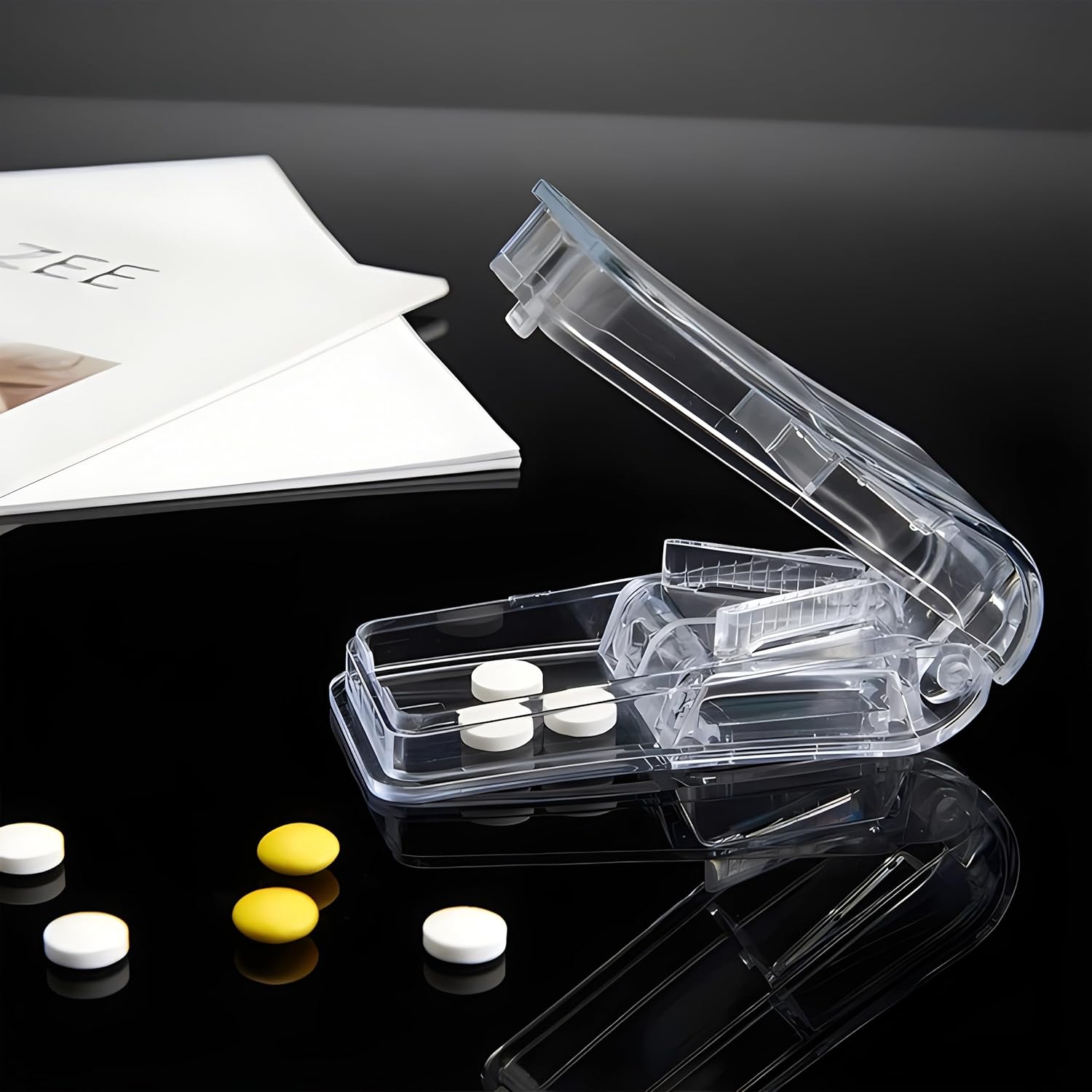يحتوي على خانات منفصلة لتنظيم الأدوية أو الفيتامينات