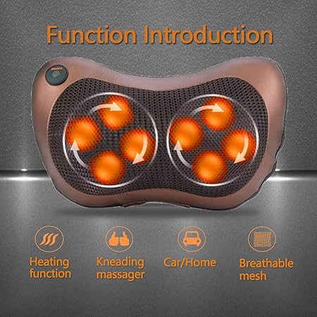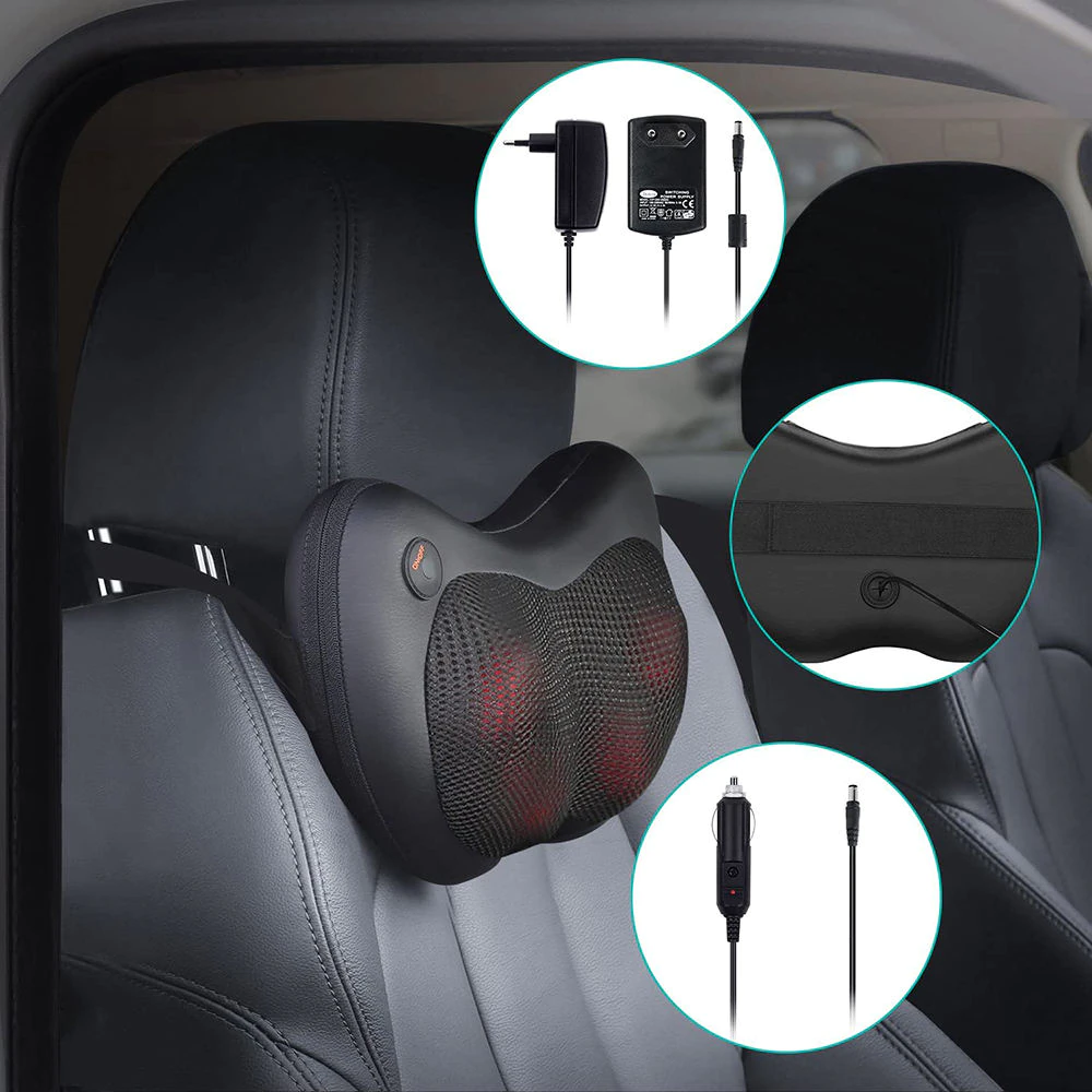 وسادة مساج للرقبة والكتفين والظهر مزودة بـ 8 رؤوس تدليك مع وظيفة تسخين تعمل بالكهرباء