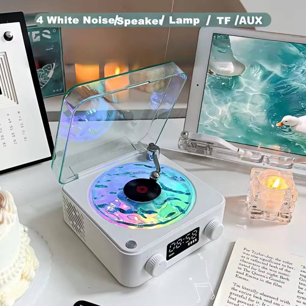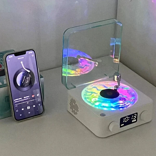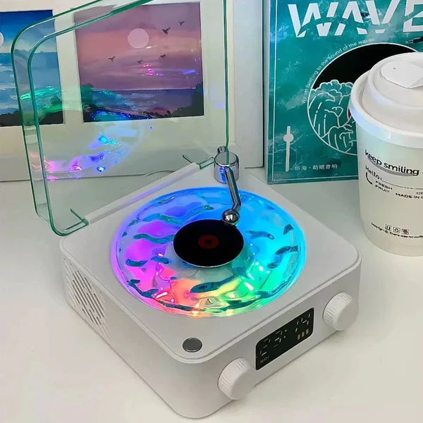 بلوتوث سبيكر على شكل مشغل اسطونات ريترو وإضاءة ساحرة