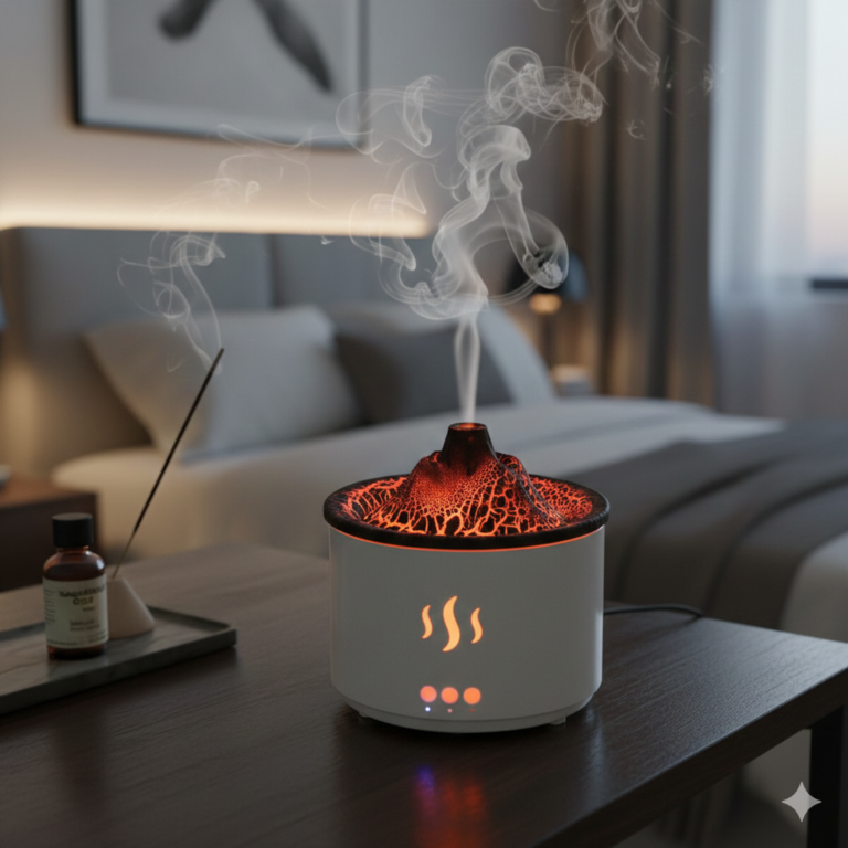 فواحة مضيئة علي شكل بركان بخزان 560 ملي لتعطير وترطيب المنزل