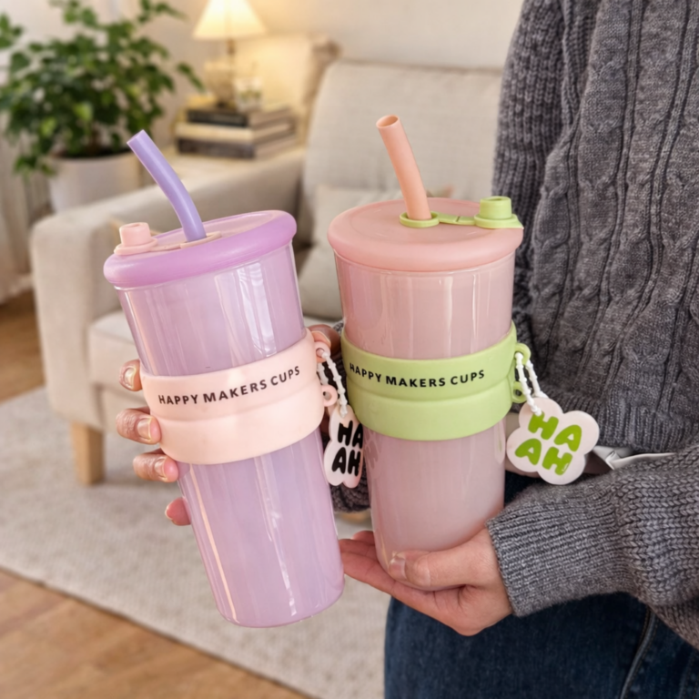 كوباية 500 ملي بغطاء محكم الغلق وشاليموه لشرب المياة والعصائرالمثلجة