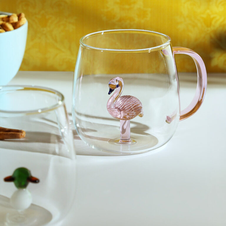 مج زجاج 400 ملي ثري دي بشكل فلامنجو من الداخل مناسب لشرب العصائر والاتية