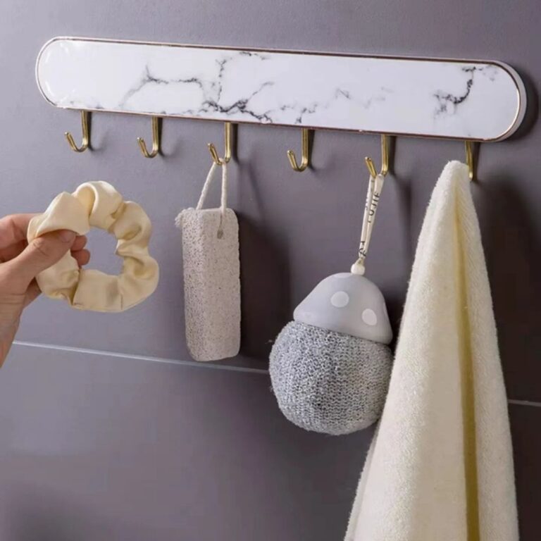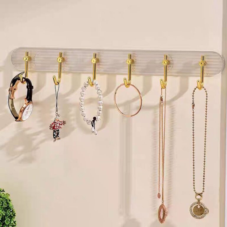 شماعة حوائط اكليريك بلزق دبل فيس ب 6 هوك جولد لتعليق الملابس والأدوات